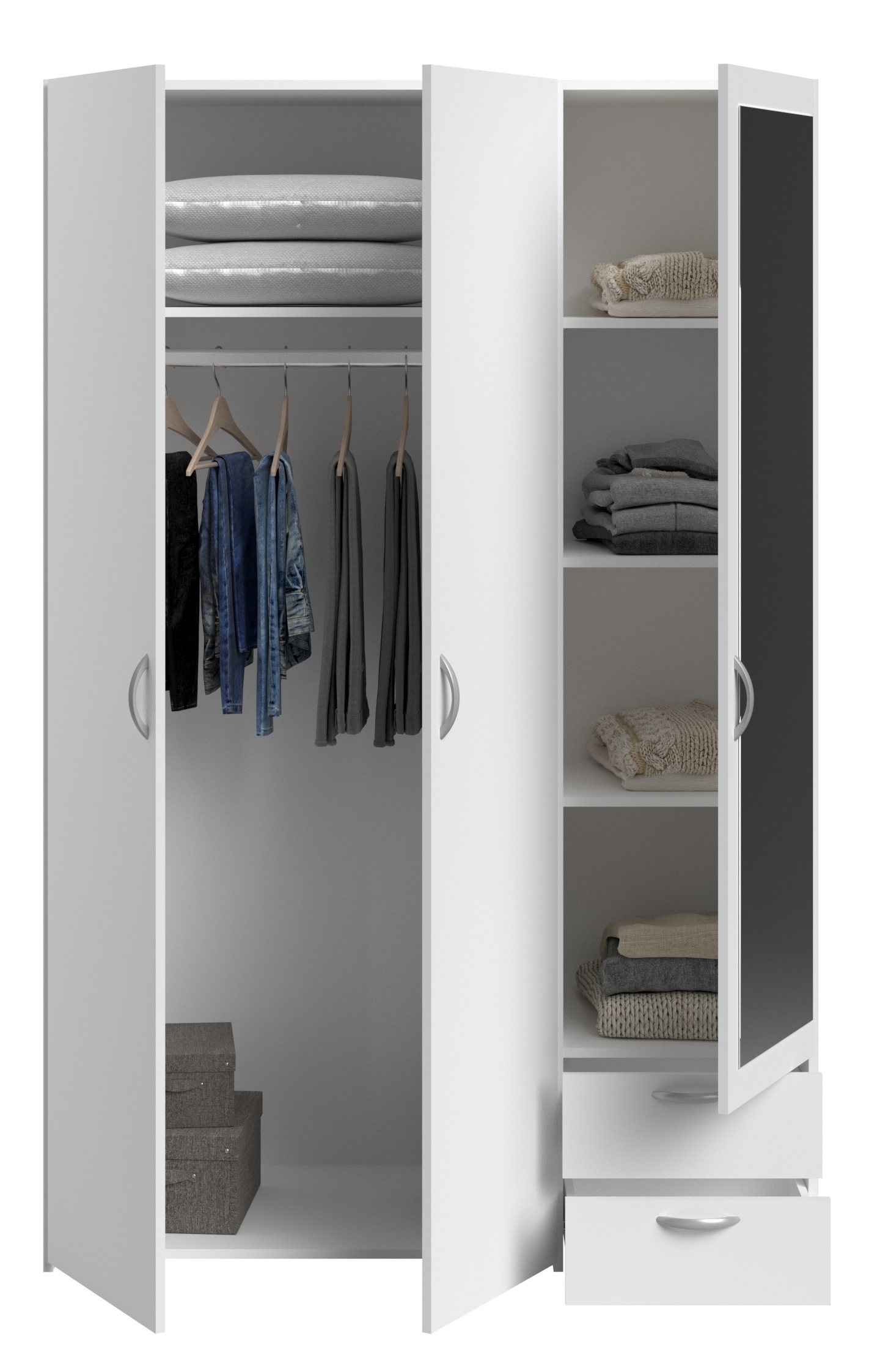 links: 2 große Türen, dahinter 1 Fach und 1 Kleiderstange