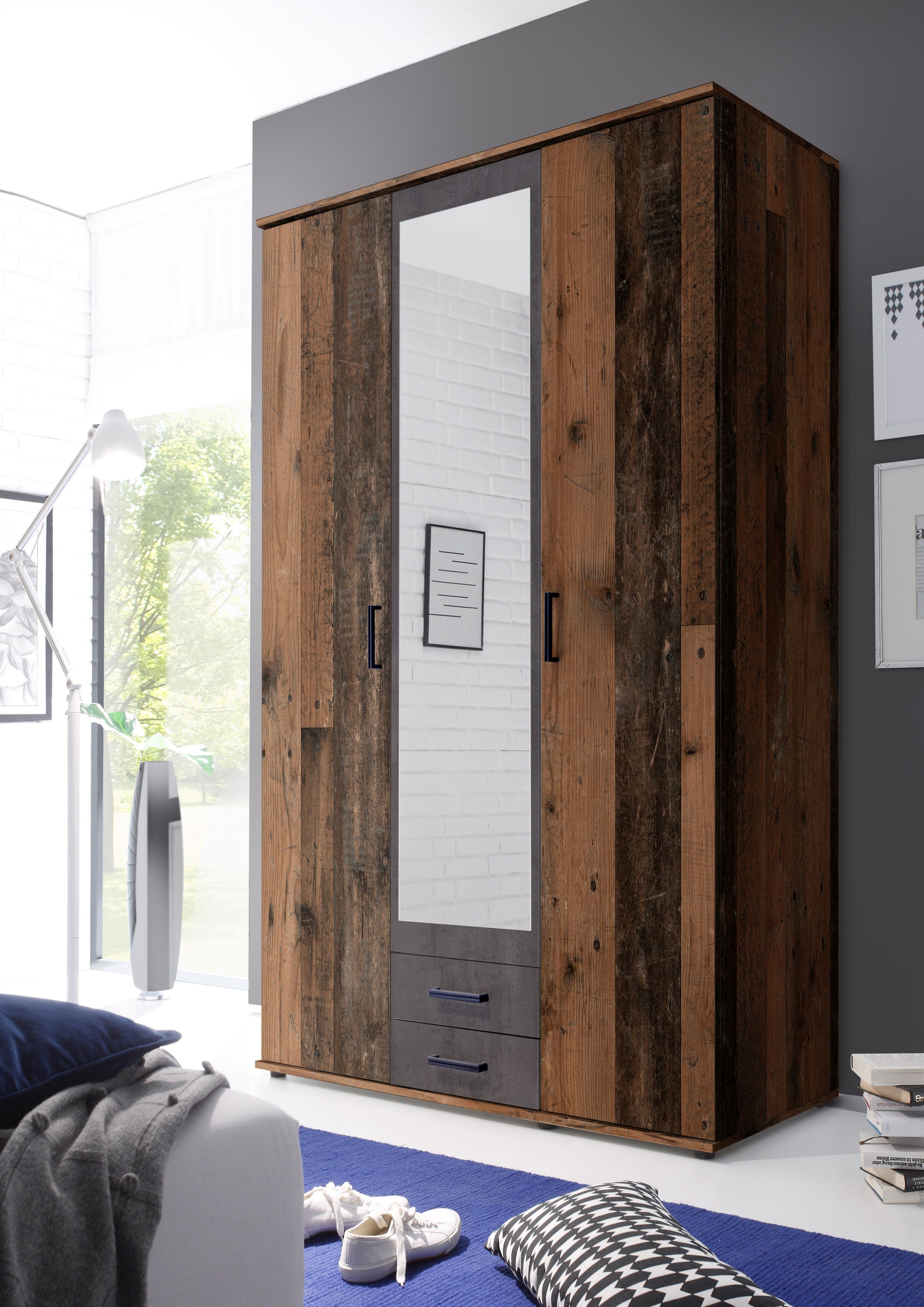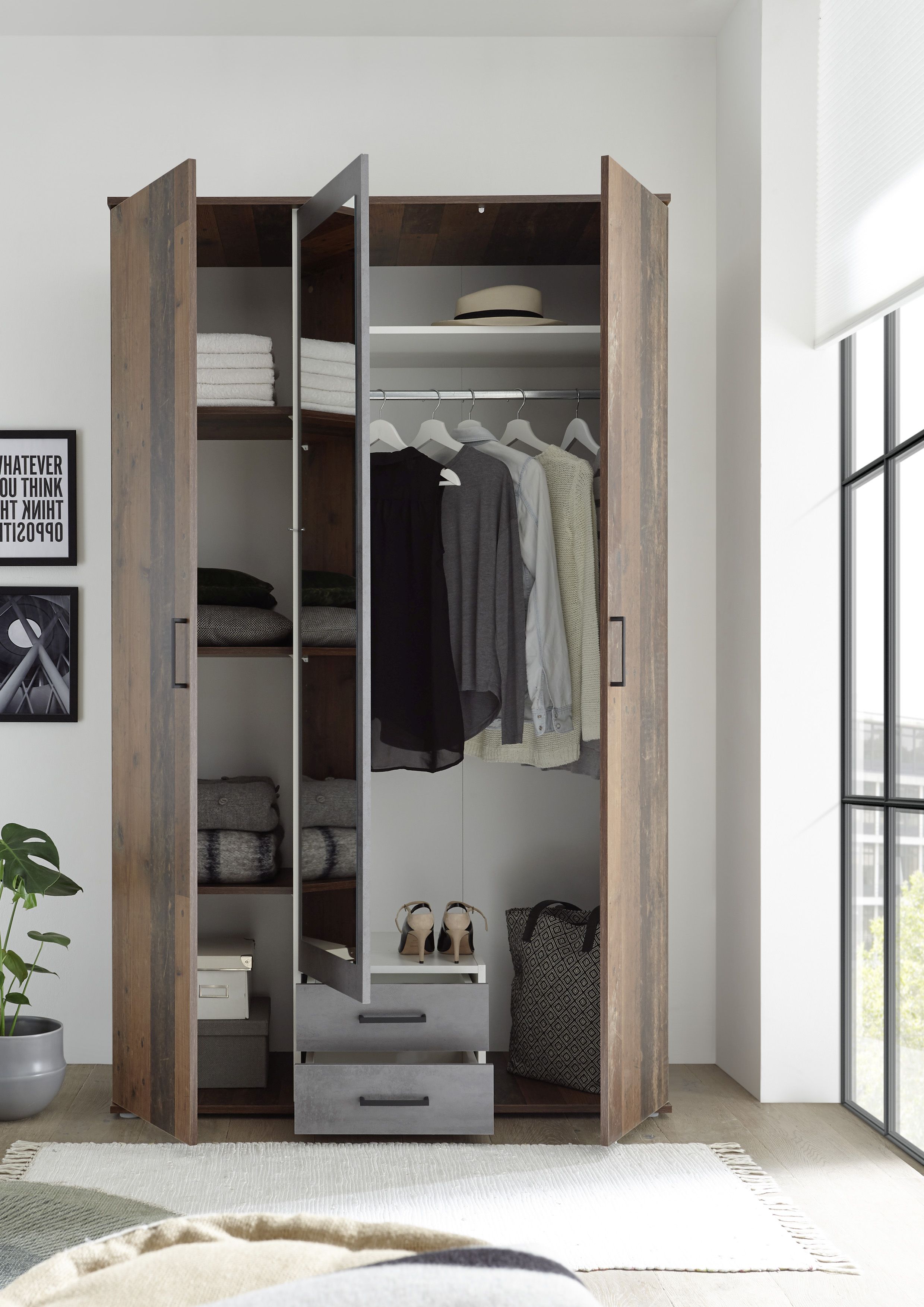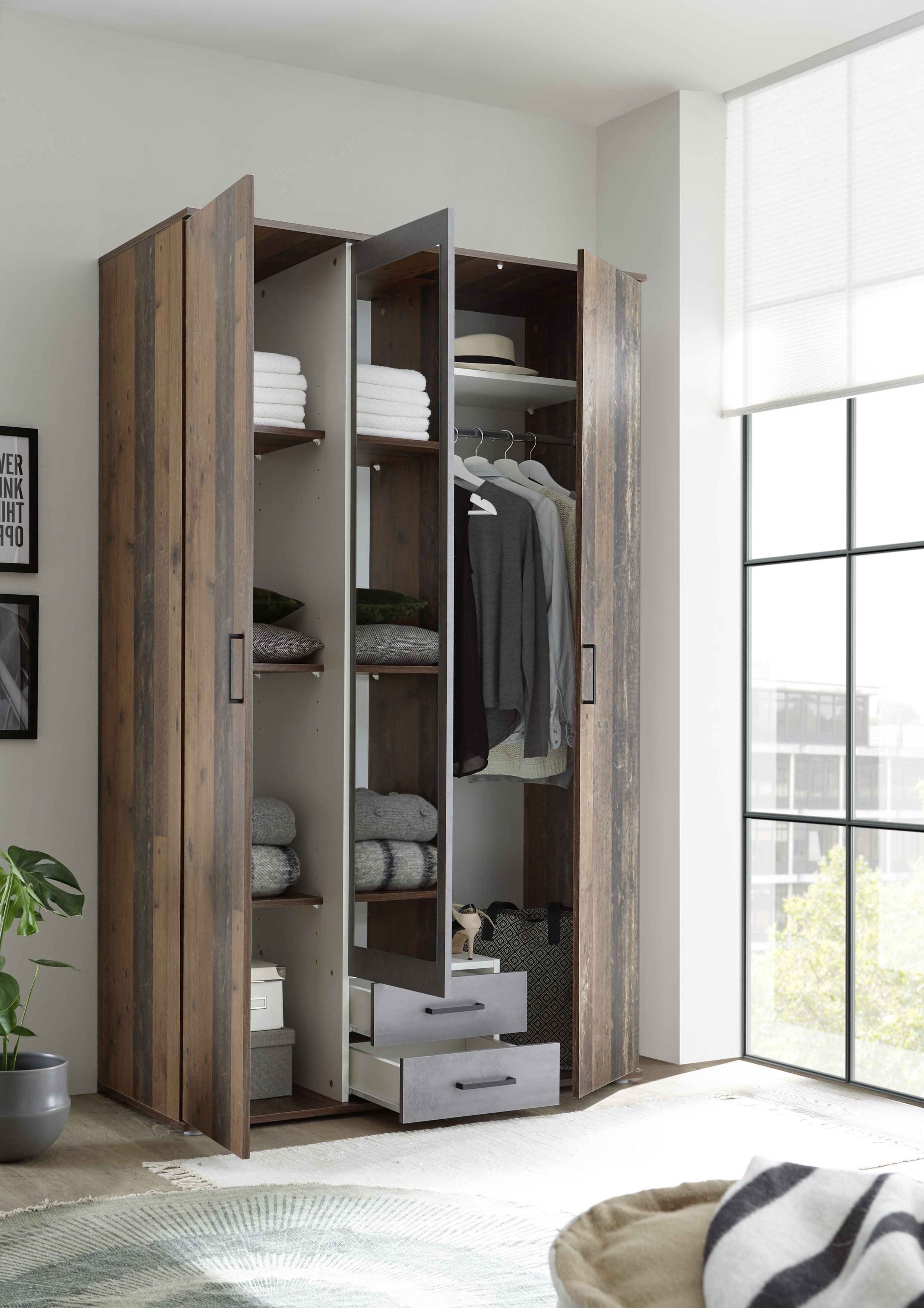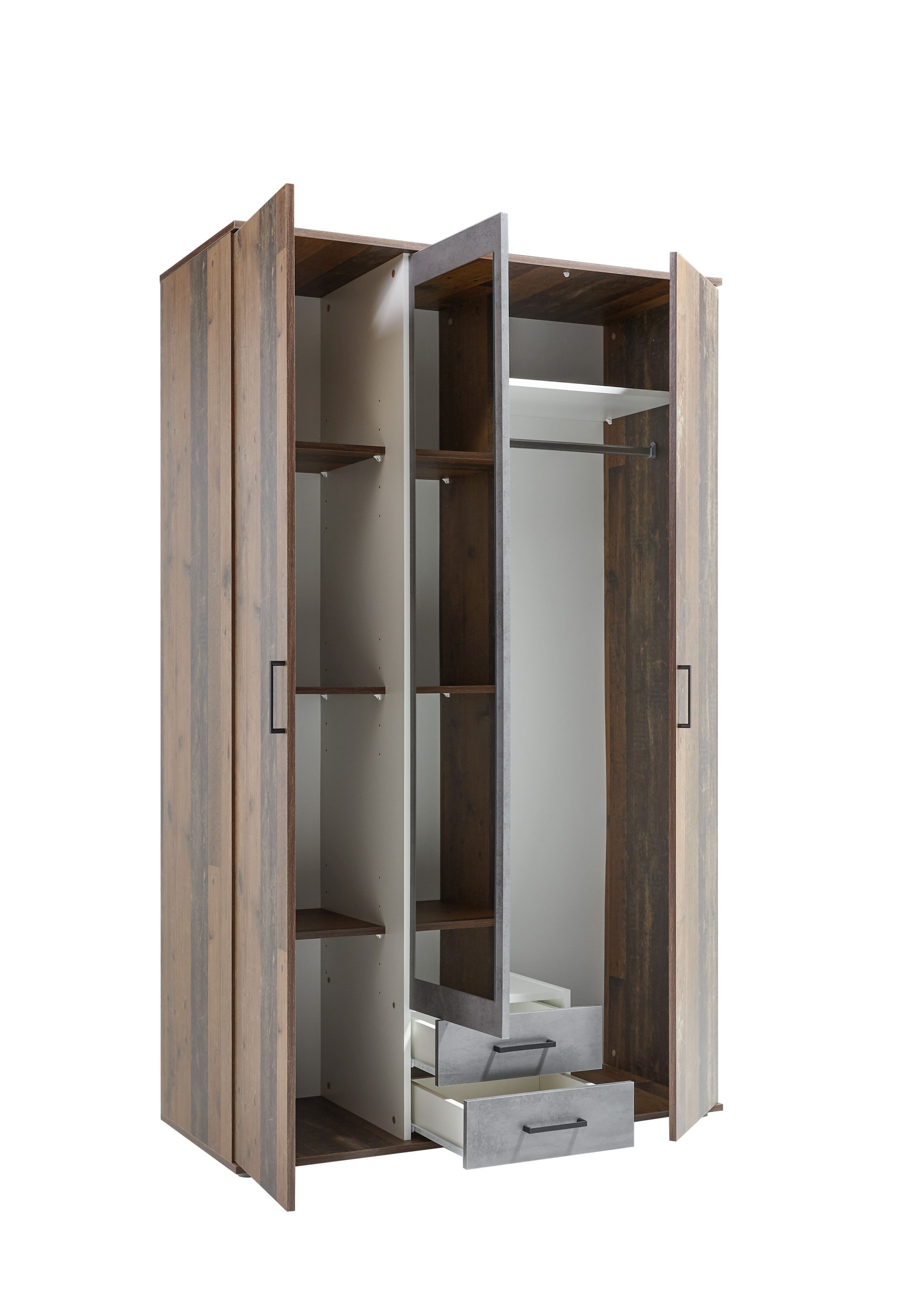 CHICAGO Eleganter Kleiderschrank mit viel Stauraum - Vielseitiger Drehtürenschrank in Old Style & Betonoxid Optik - 120 x 197 x 54 cm (B/H/T)