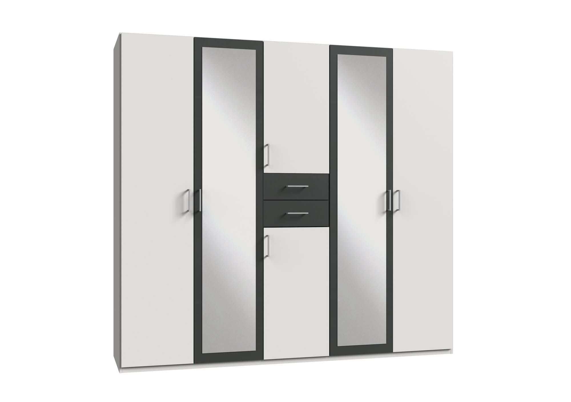 Korpus und Front: Weiß kombiniert mit Absetzungen in Graphit / Spiegel
