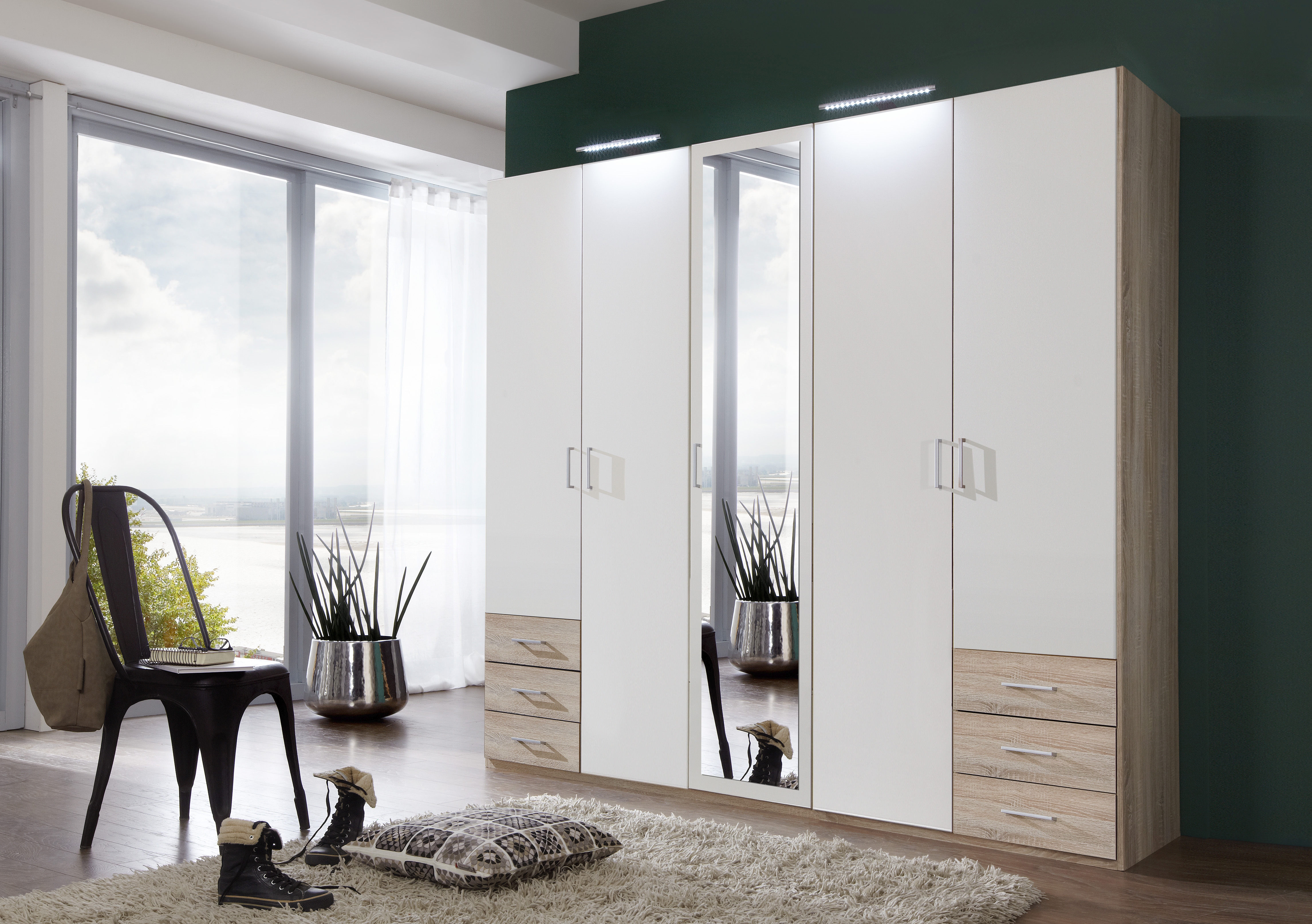 5 Türen, davon mittig 1 Tür mit Spiegel