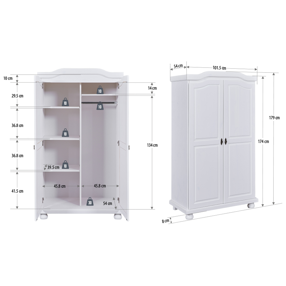 Der umweltfreundlich produzierte Kleiderschrank aus Massivholz überzeugt durch hochwertige Verarbeitung und verspricht dadurch eine lange Lebensdauer.