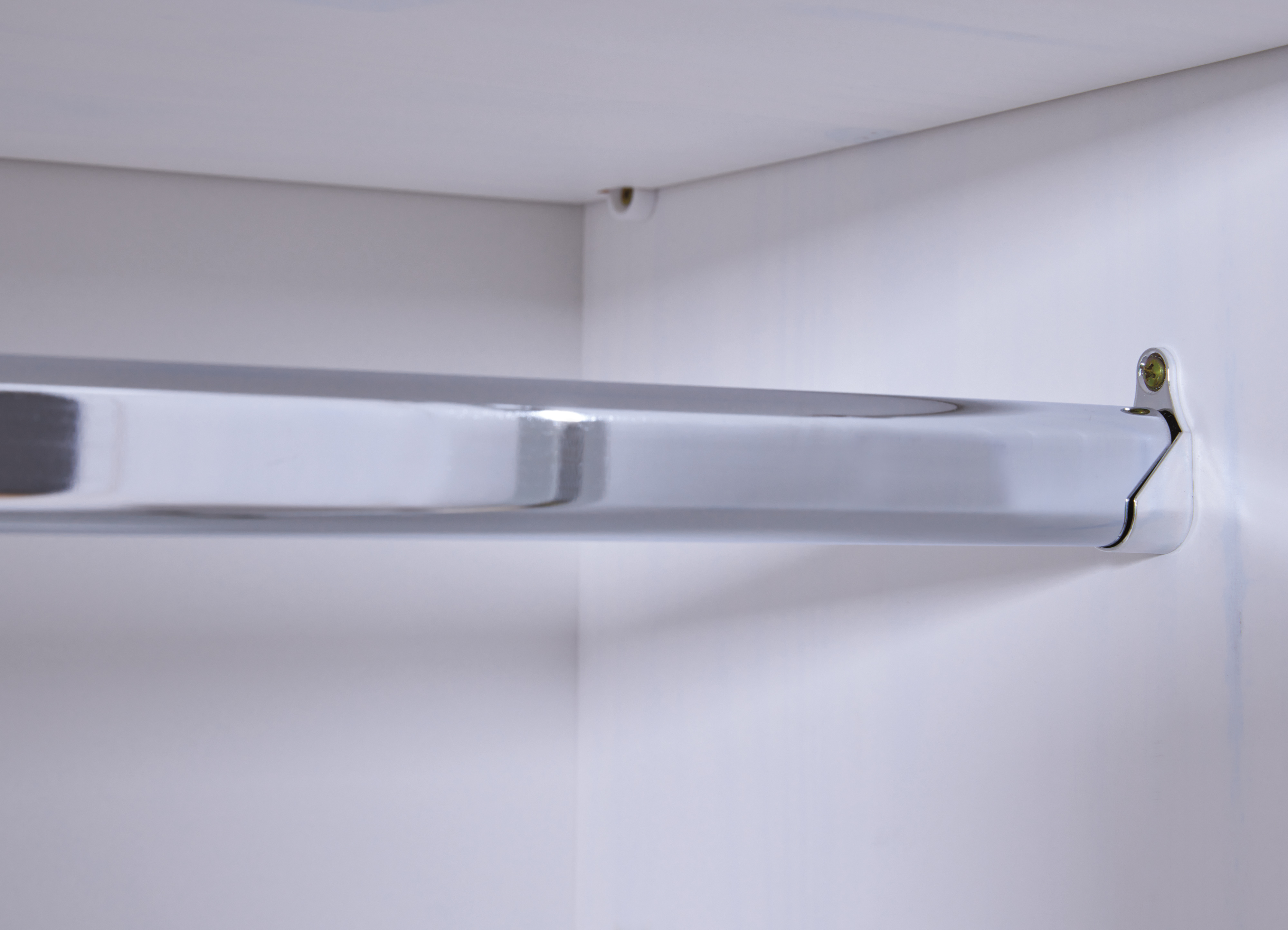 Der Kleiderschrank verfügt über 5 Fachböden und eine Kleiderstange. Er bietet ausreichend Platz für Ihre Kleidungsstücke!