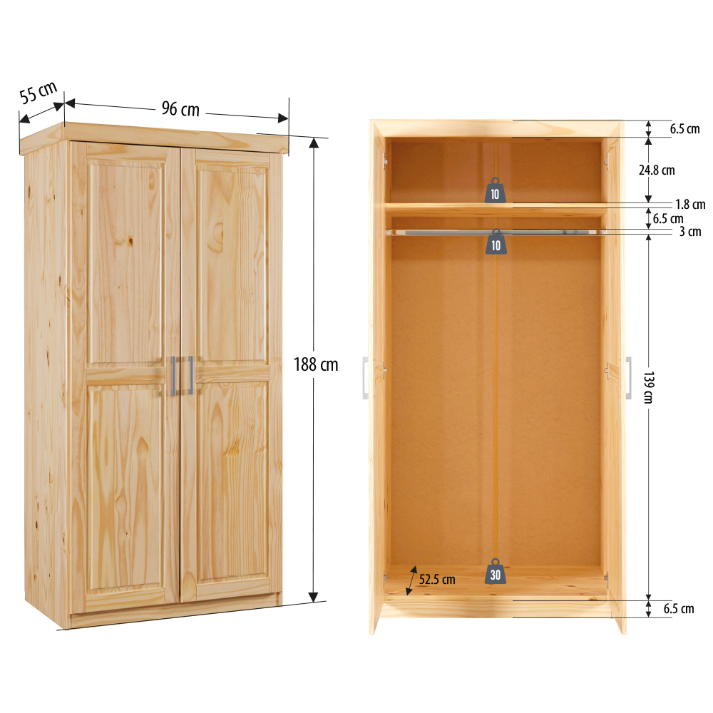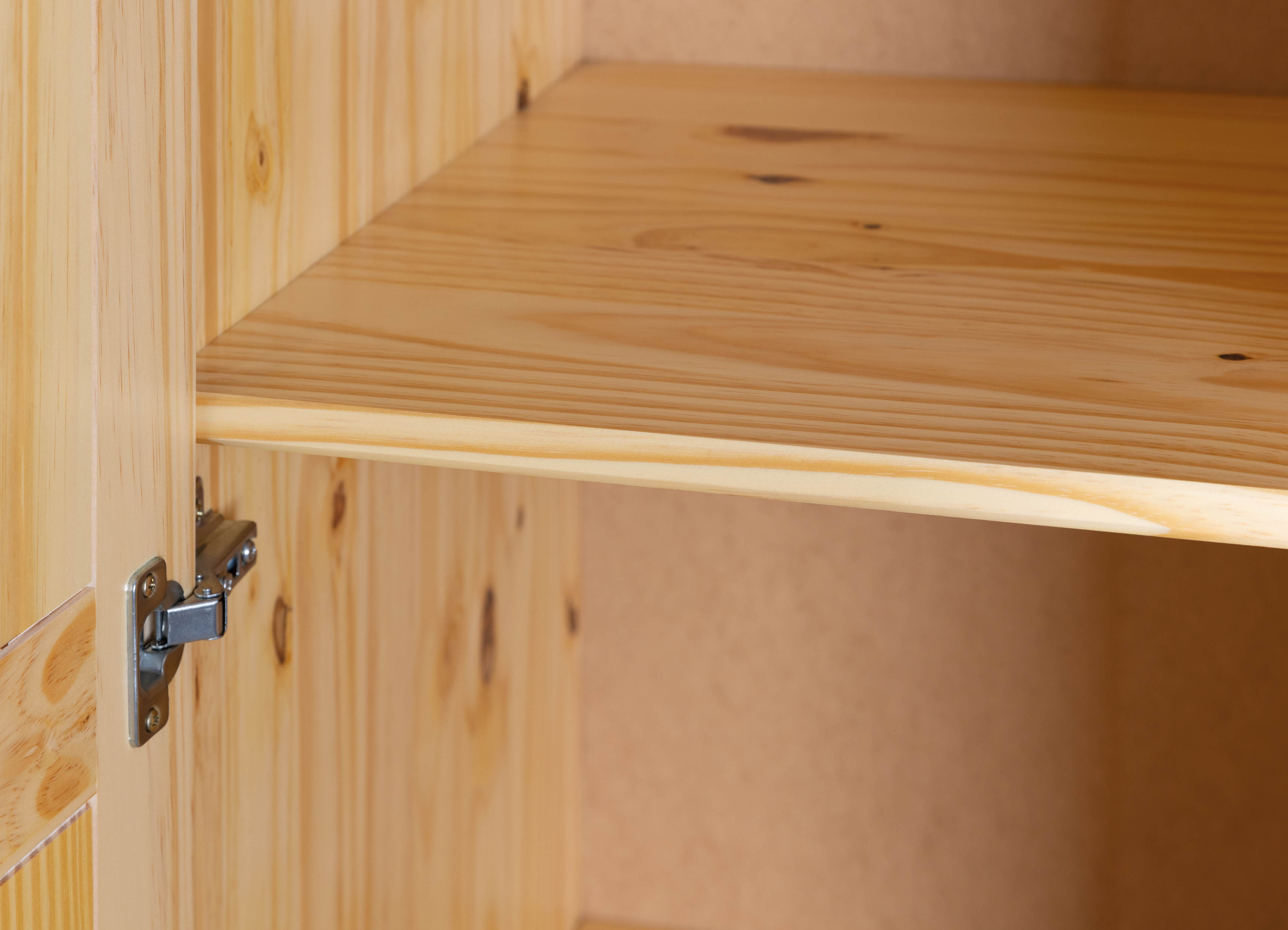 Die Hutablage sowie die Kleiderstange bieten jede Menge Stauraum zum Hängen oder Ablegen – hier hat wirklich alles Platz! Das Massivholz, aus dem der Schrank besteht, macht ihn zu einem stabilen und langlebigen Gefährten.