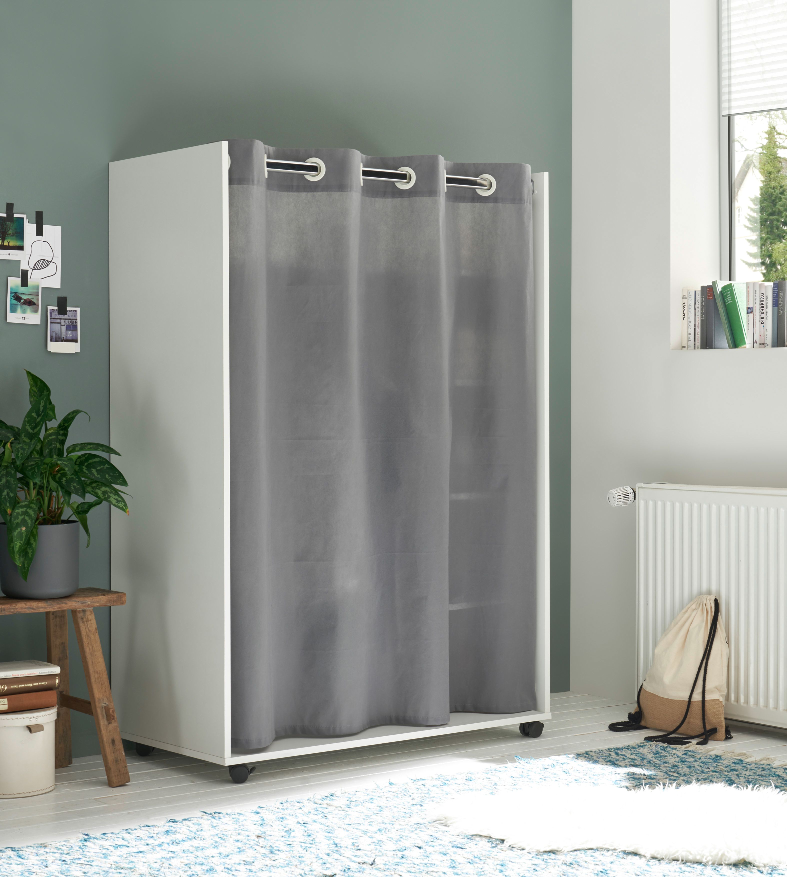 Die besonderen Kleiderschränke JENKE bieten praktische Funktionen und sorgen für perfekte Ordnung - nicht nur im Schlafzimmer! Sie haben die Wahl zwischen einem in der breite verstellbaren Kleiderschrank, einem mobilen Kleiderschrank auf Rollen oder einem Kleiderschrank mit Platz für 3 Aufbewahrungsboxen. Jedes Modell hat seine Vorteile, bietet außerdem mit der cleveren Innenaufteilung viel Stauraum und ist in jedem Raum flexibel einsetzbar. Ein grauer Stoffvorhang ist immer inklusive, für ein offenes Wohngefühl kann der Schrank aber auch ohne Vorhang aufgestellt werden.