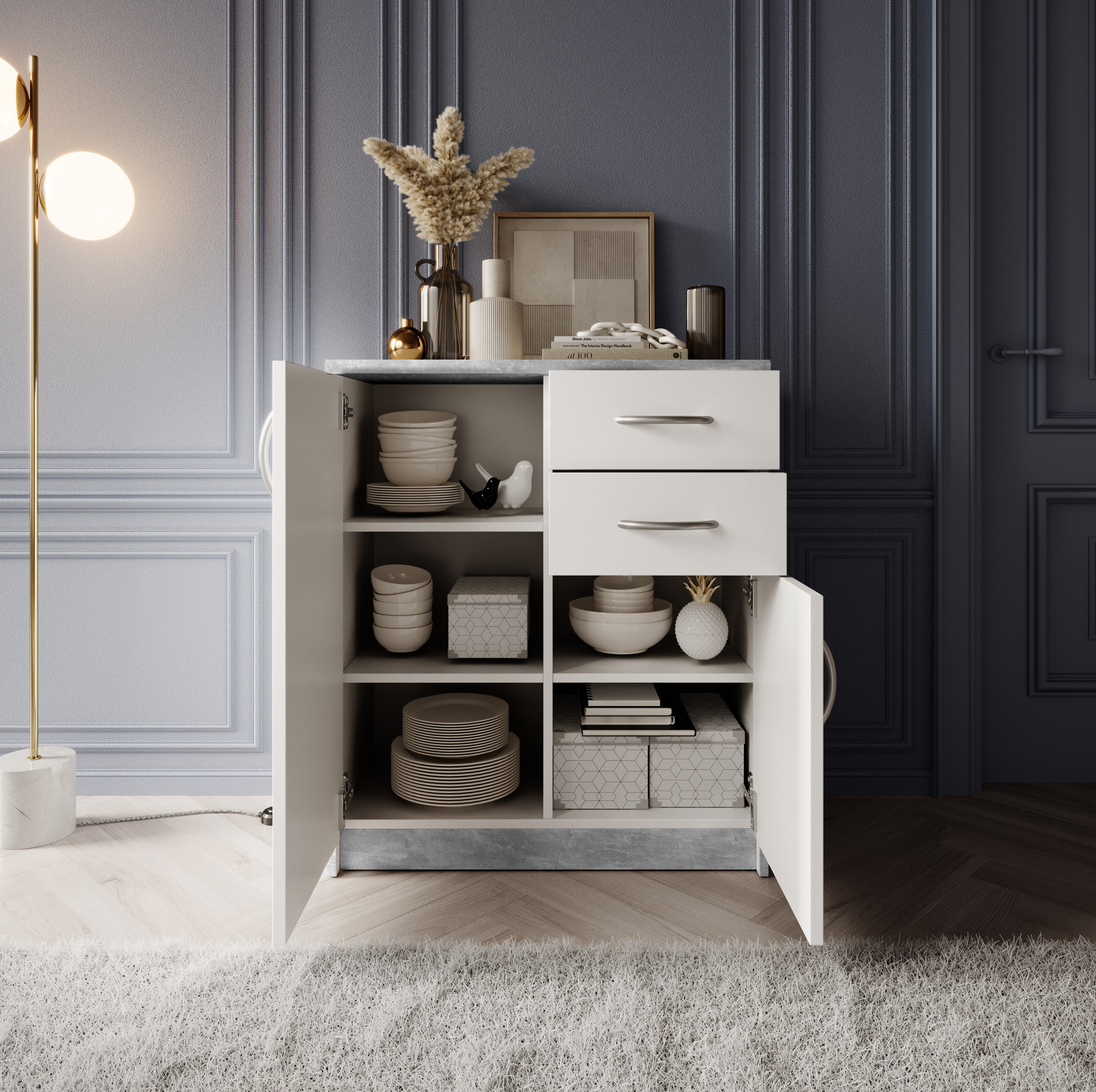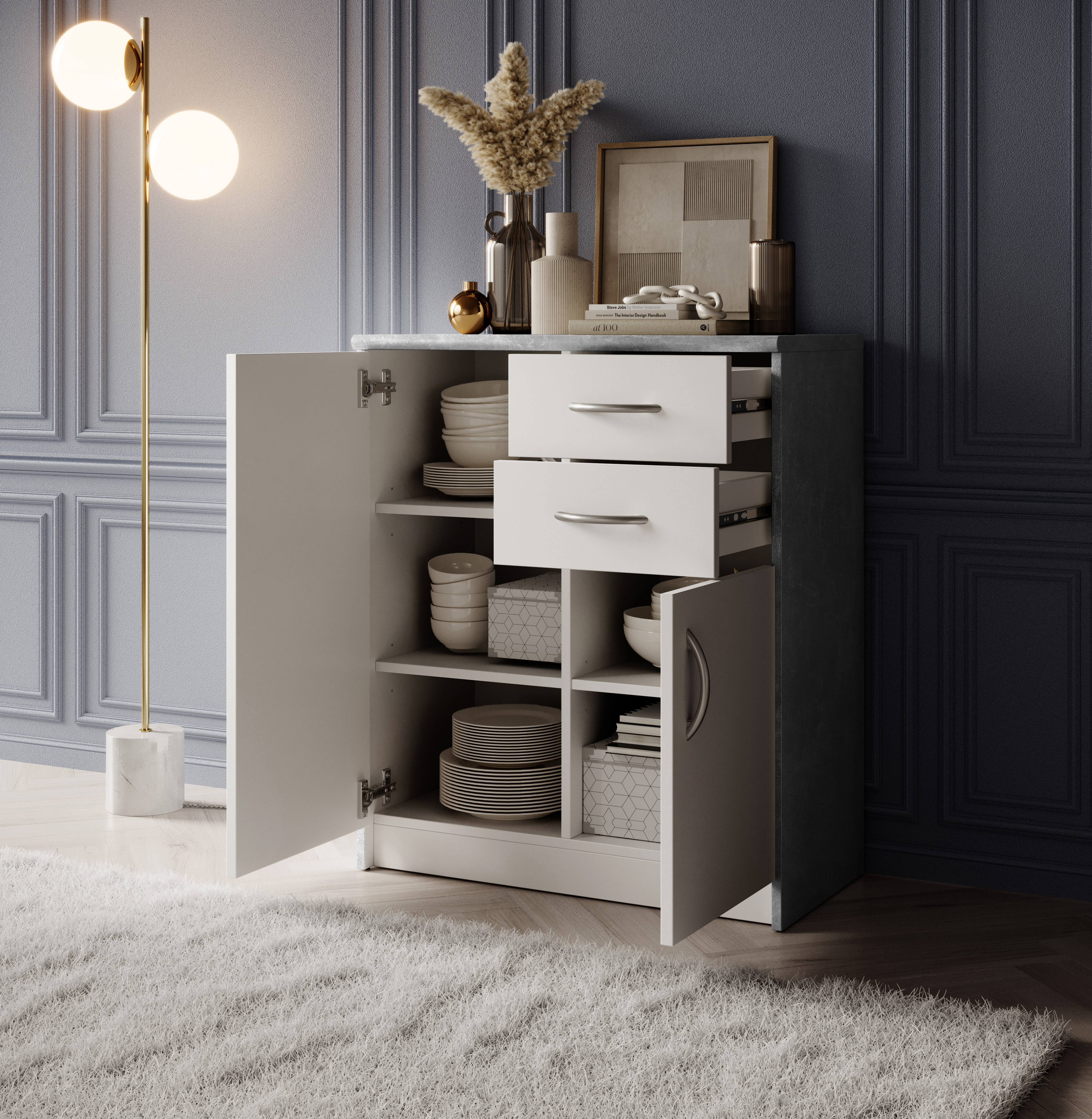 | Ausstattung Kommoden Phono Büro Regal: | Schublade(n), Türe(n) | ||