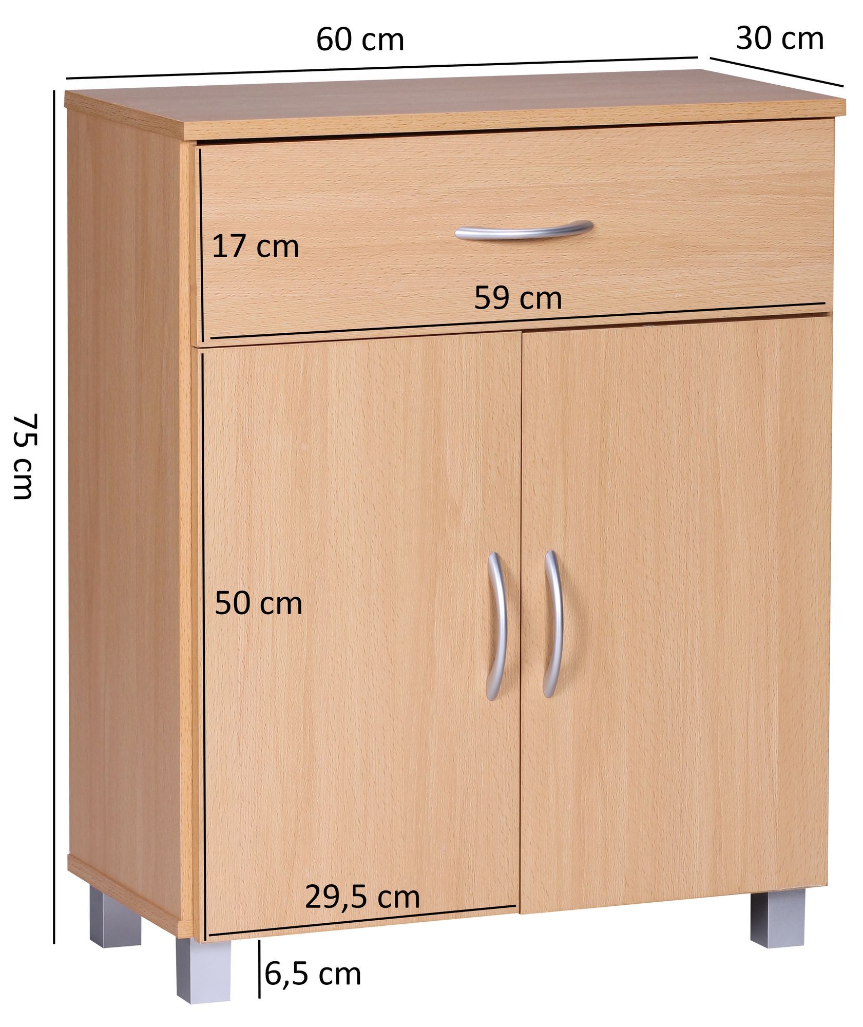 - KLEINER ALLROUNDER ✔ Diese Kommode ist vielseitig einsetzbar. Platzieren Sie diese in Ihrem Flur um Ihre Schuhe ordentlich zu verstauen oder im Wohnzimmer für diverse Gegenstände. Hinter den beiden Türen finden Sie zwei geräumige Fächer, in denen Sie viele Gegenstände vor neugierigen Blicken schützen. Egal wo Sie das Sideboard platzieren - es wird Ihnen stets zu Diensten sein.