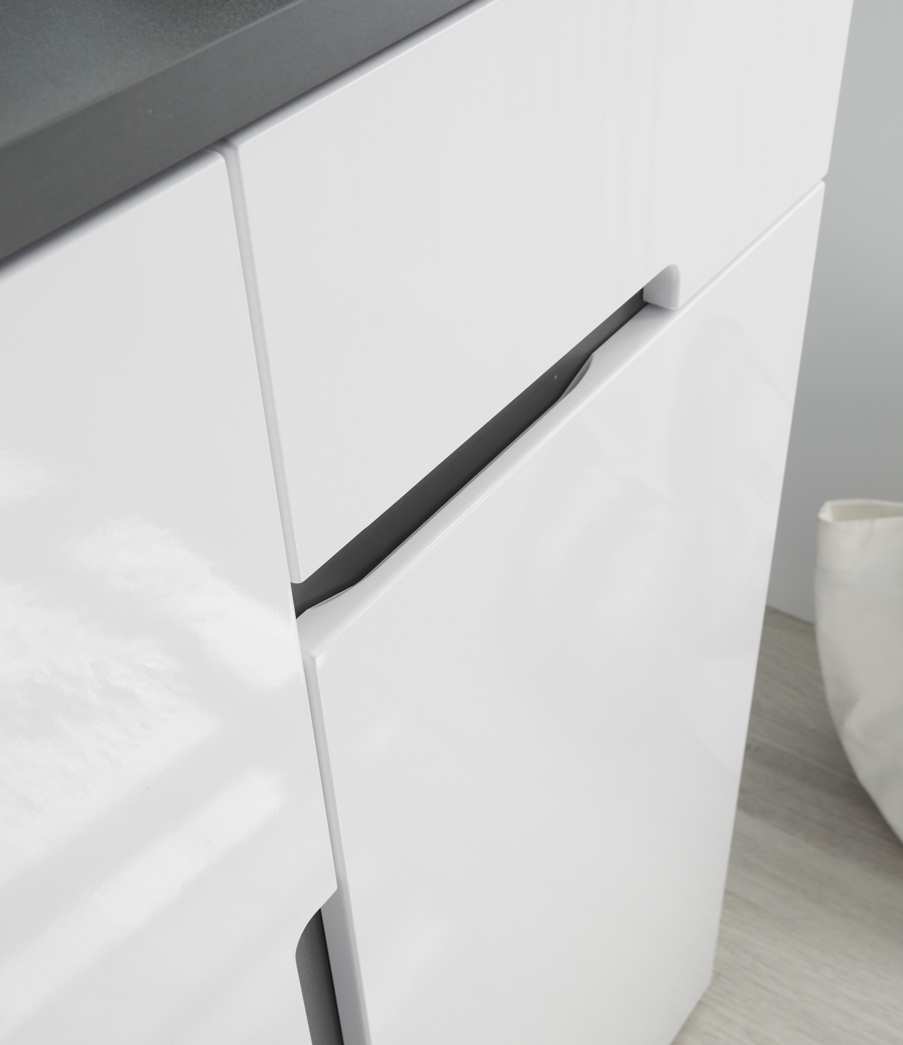 Front: MDF (Mitteldichte Holzfaserplatte) Weiß Hochglanz Tiefzieh