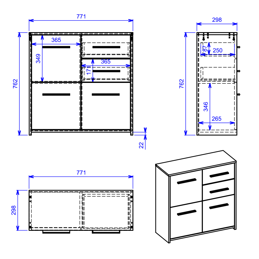 | Ausstattung Kommoden Phono Büro Regal: | Schublade(n), Türe(n) | ||