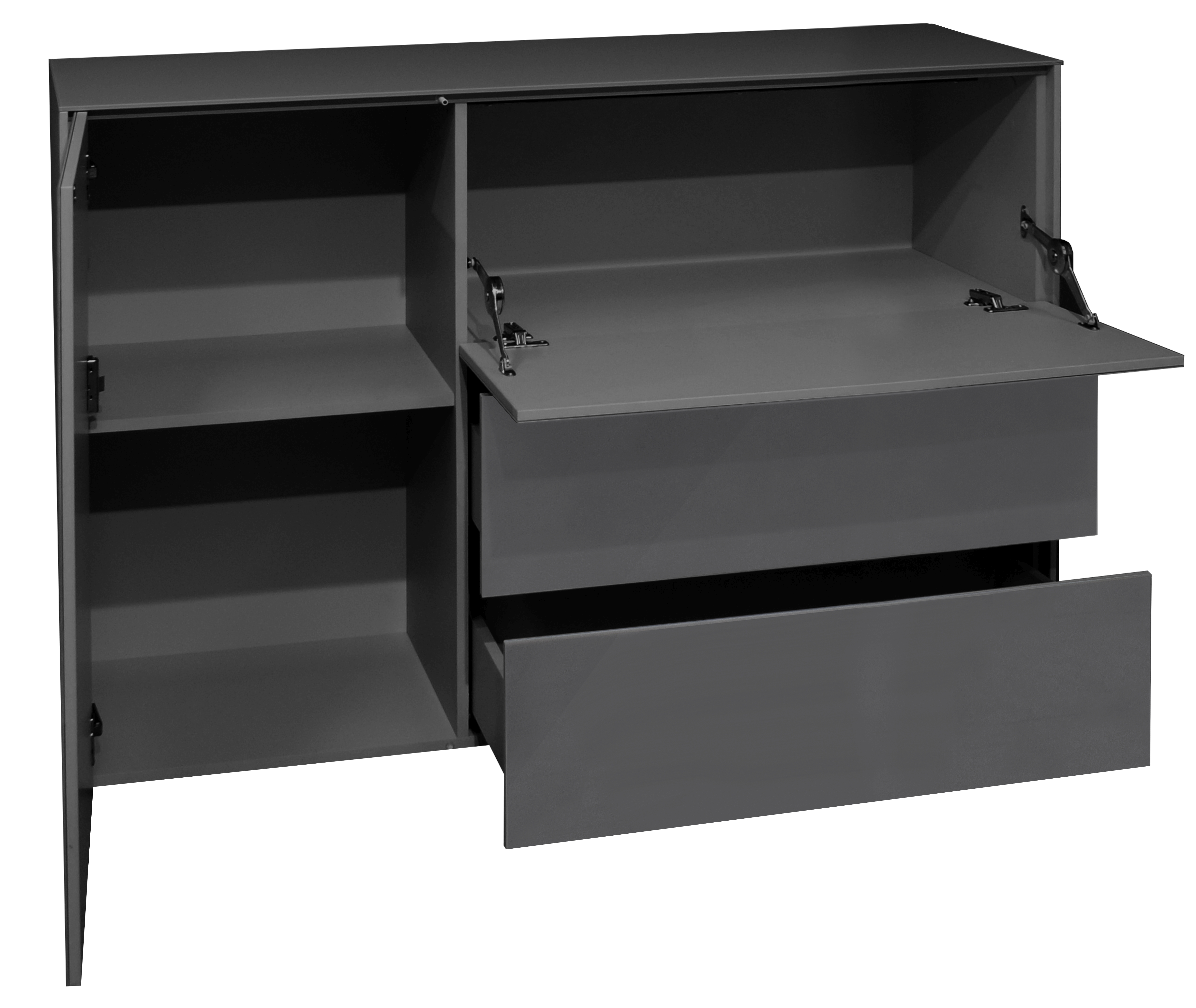 Front und Korpus: Anthrazit matt Lack / Glas anthrazit Glanz
