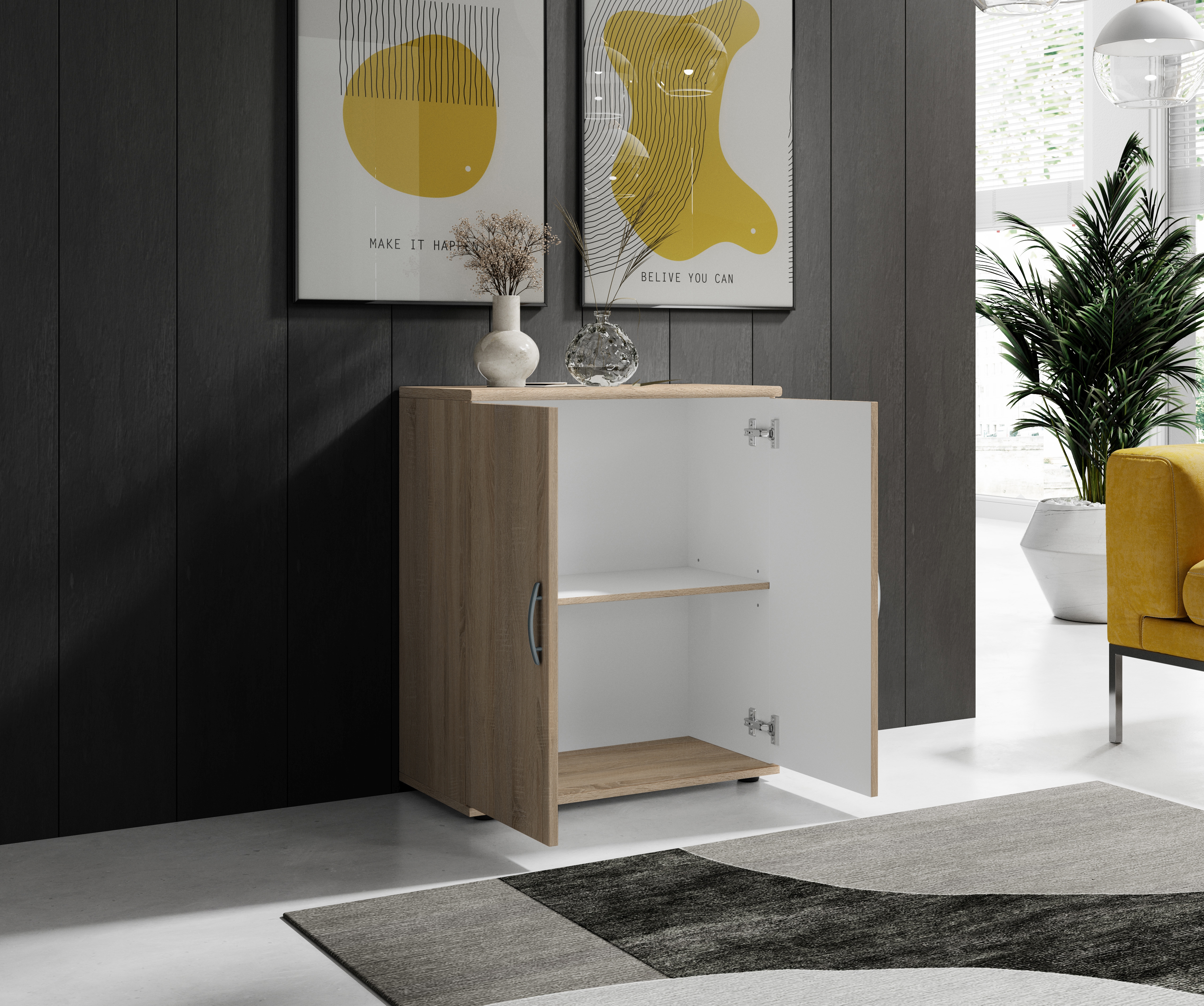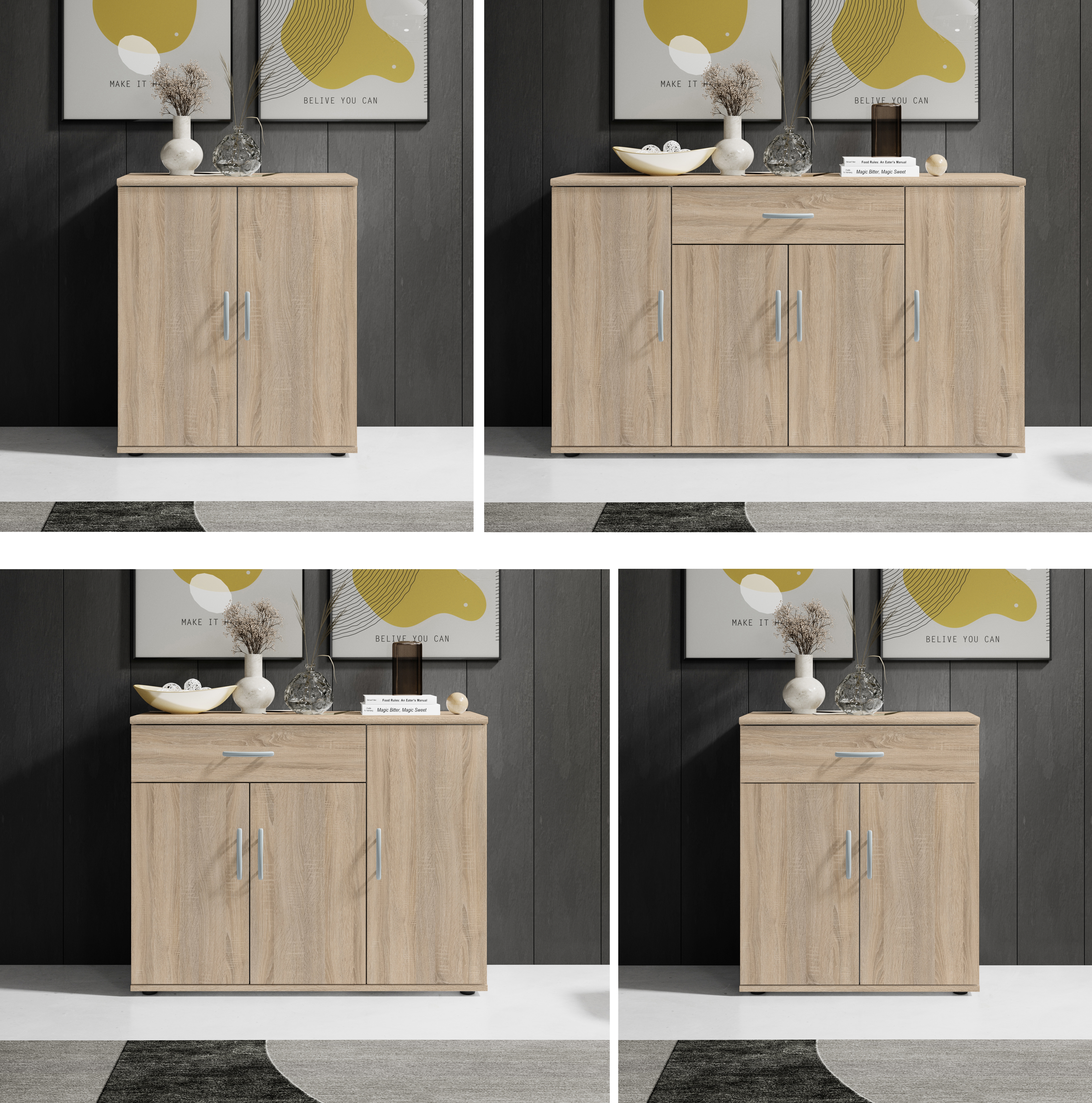 Front: Sonoma Eiche Holznachbildung, Spanplatte Melaminbeschichtung