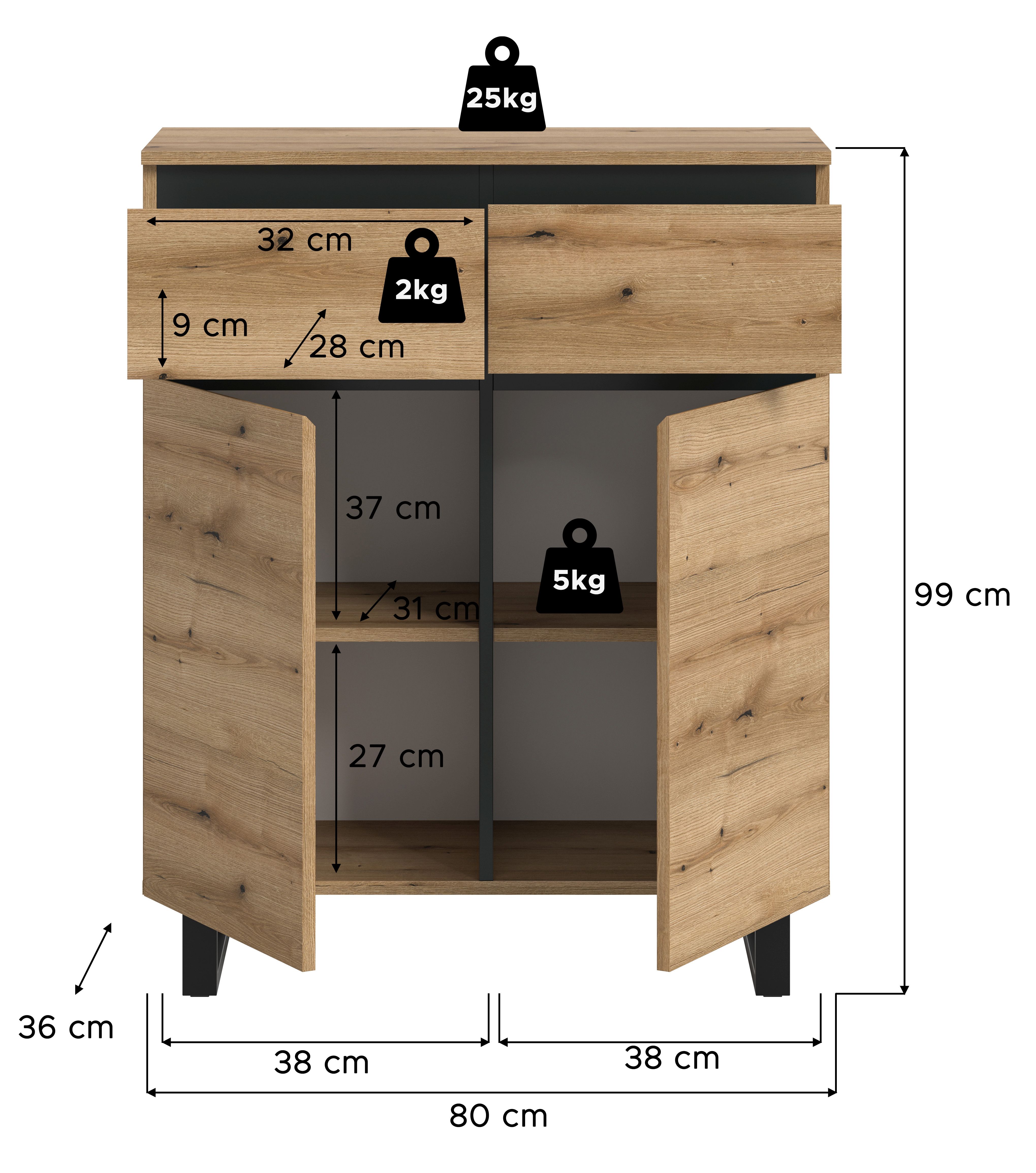 - Maße ca. (B/H/T): 80 x 99 x 36 cm