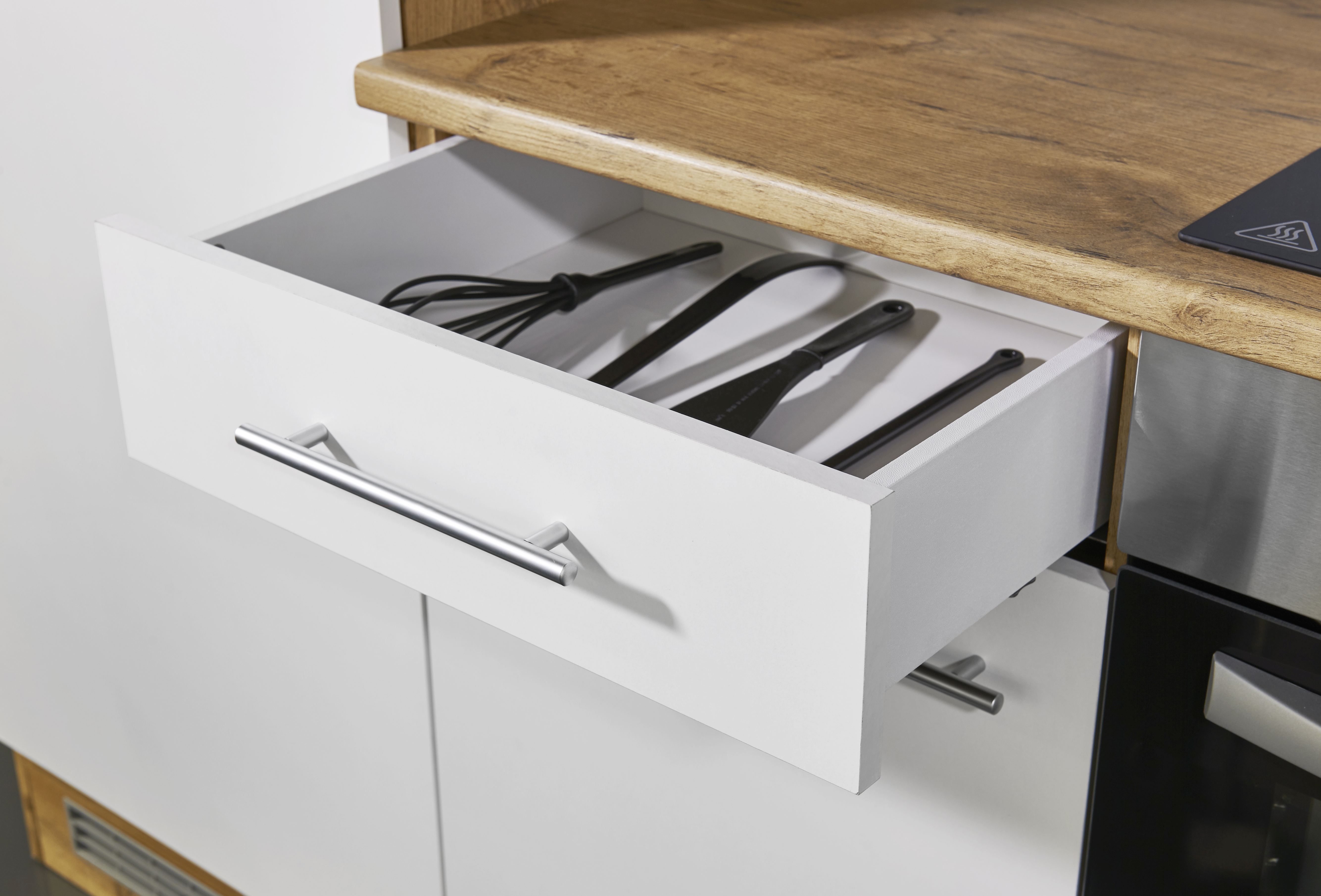 1 Unterschrank mit 1 Schubkasten (System mit Unterführung), 1 Tür und 1 Einlegeboden