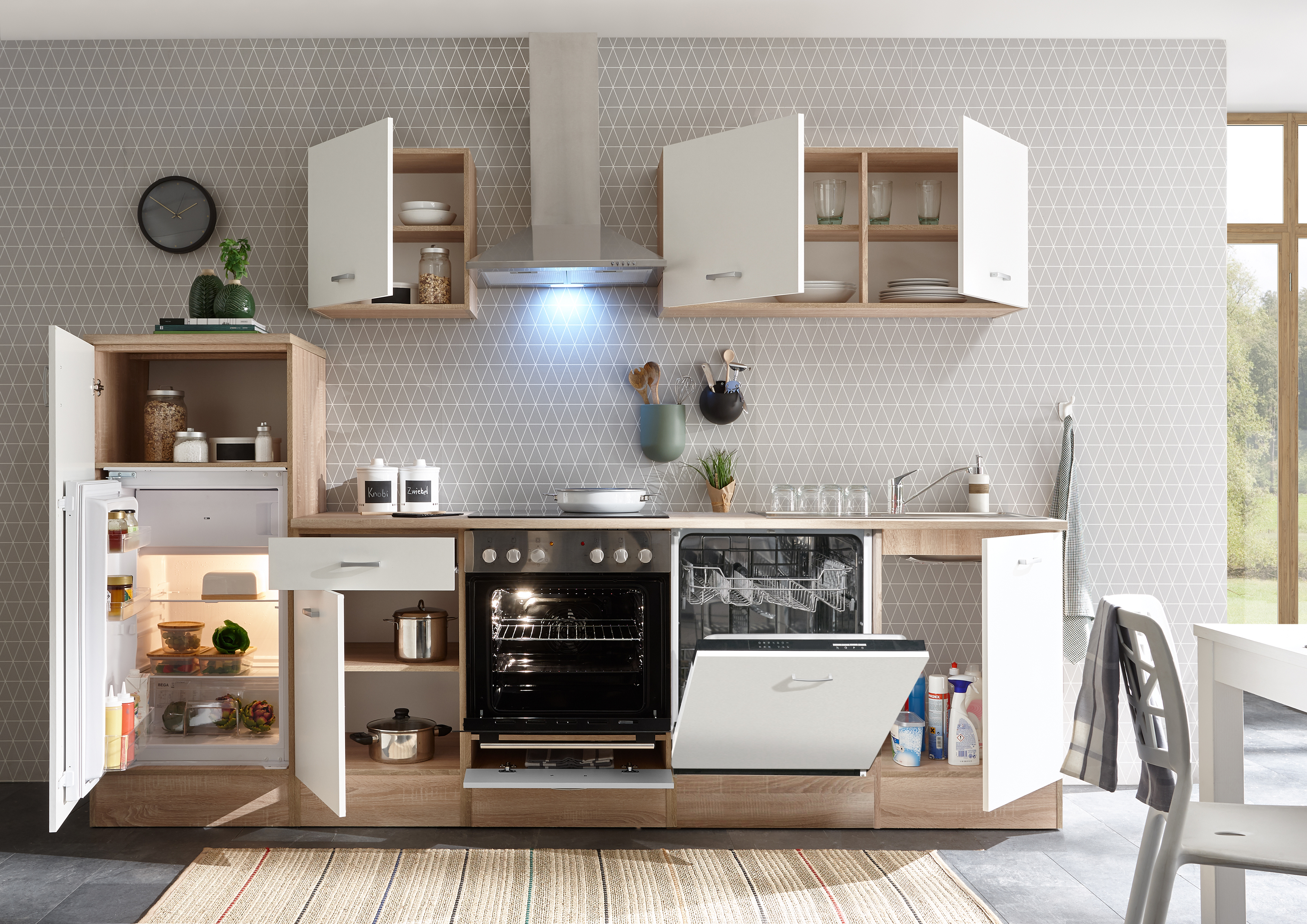 1 Küchenblock mit Elektro-Geräten wie zuvor beschrieben
