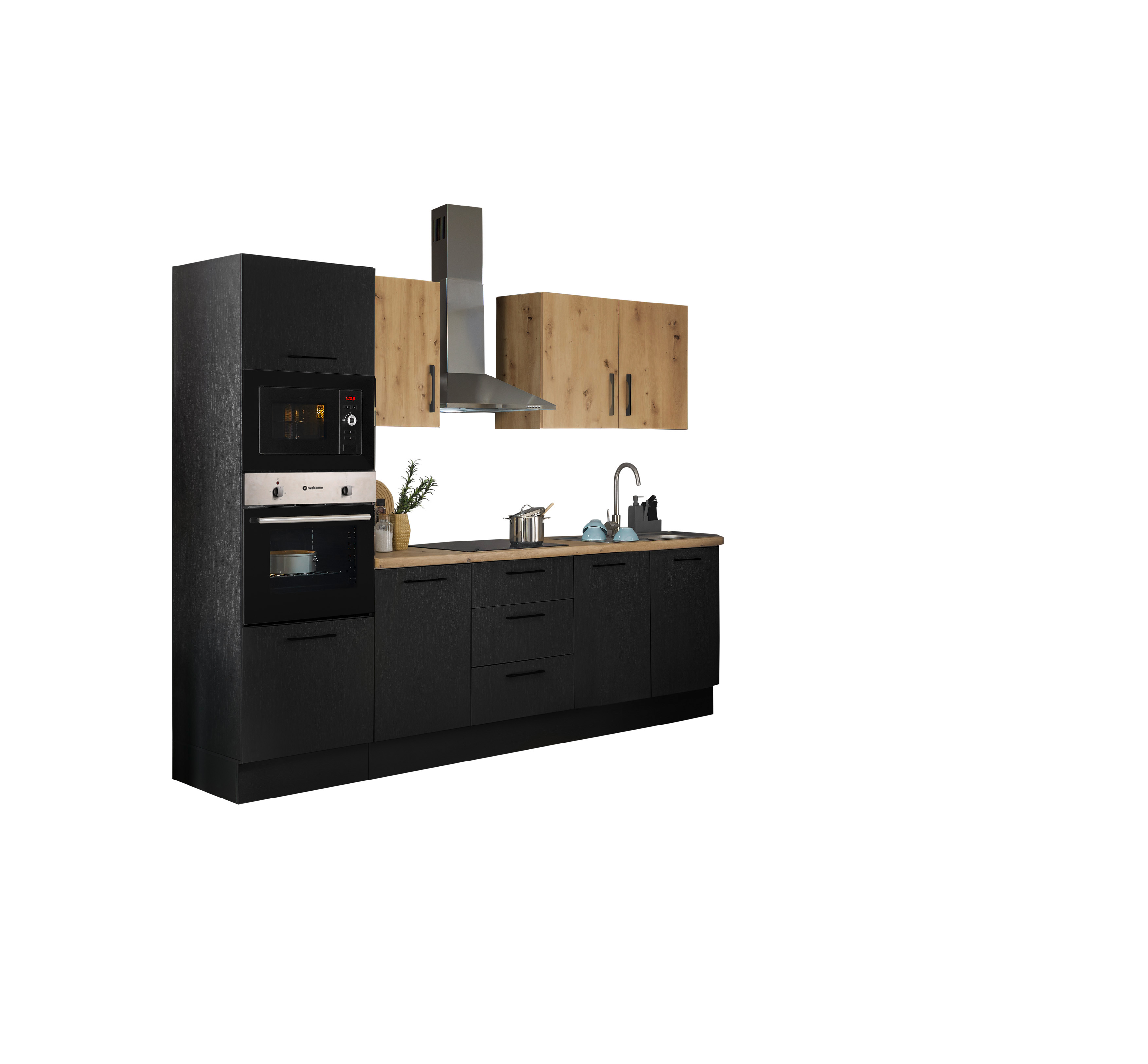 Front und Korpus: schwarz matt woodprint kombiniert mit Spanplatte Artisan Eiche Holznachbildung melaminbeschichtet