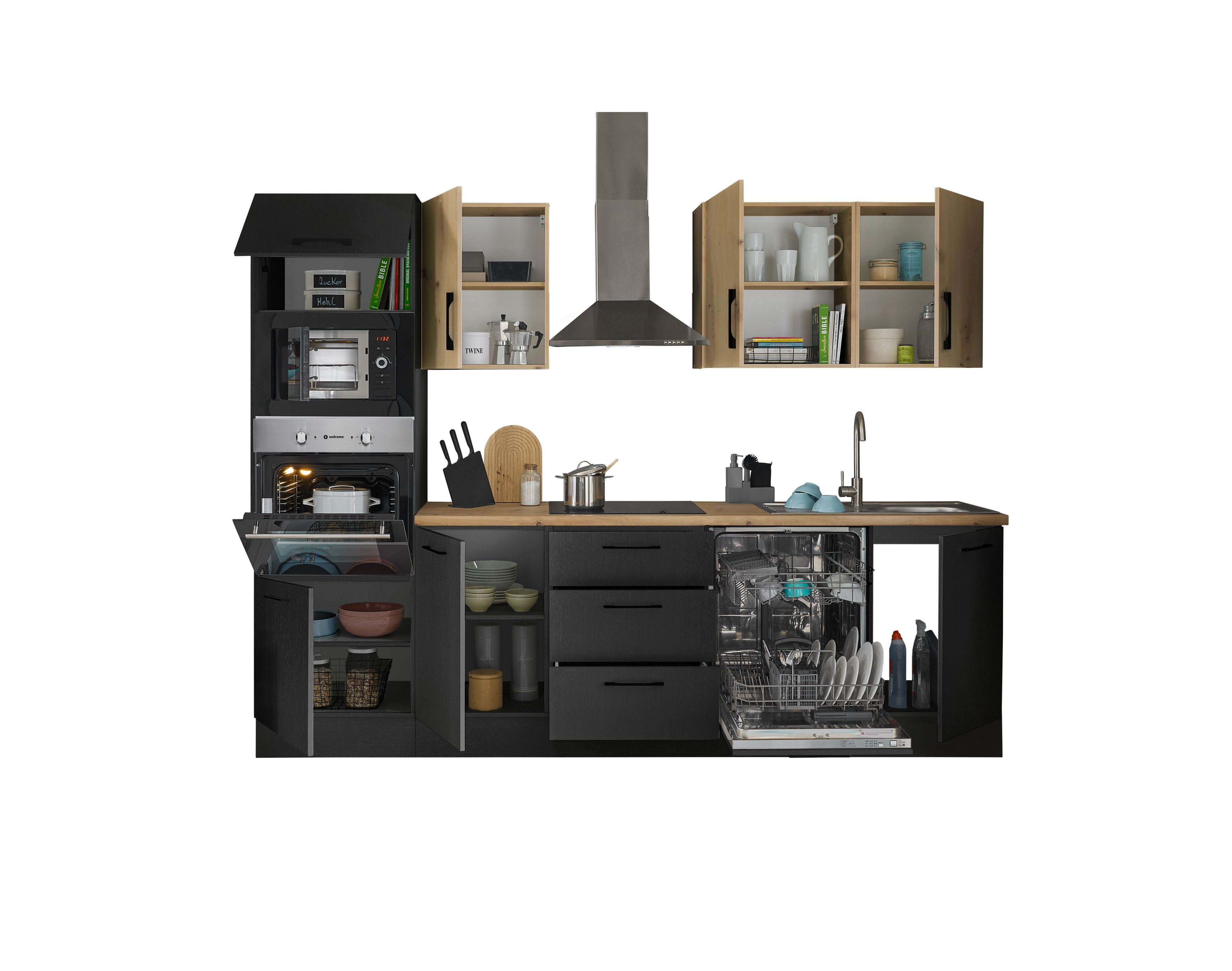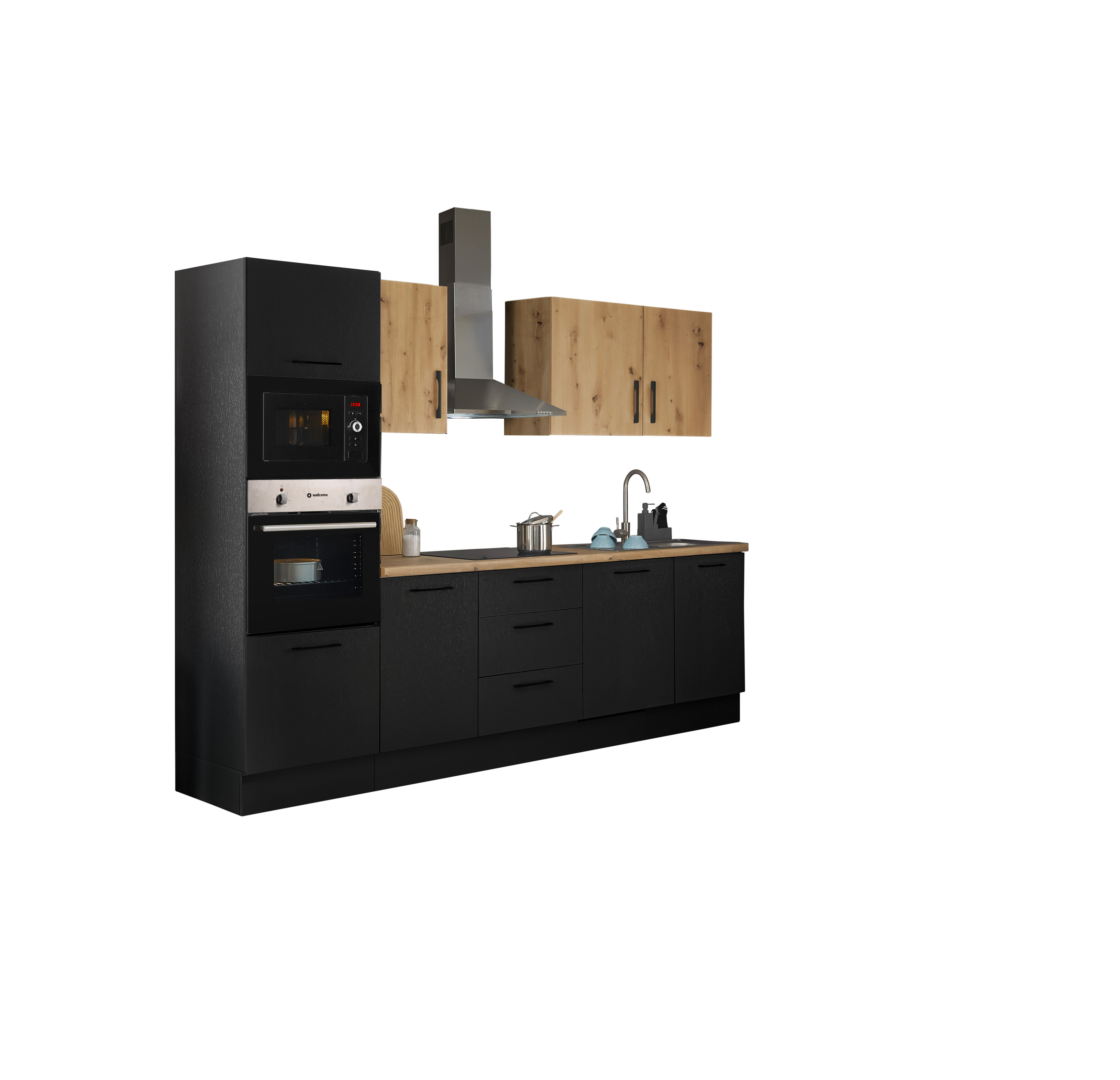 Front und Korpus: schwarz matt woodprint kombiniert mit Spanplatte Artisan Eiche Holznachbildung melaminbeschichtet