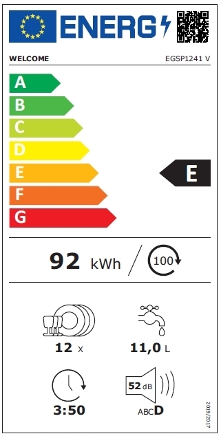jährlicher Energieverbrauch: 92 kWh / Jahr