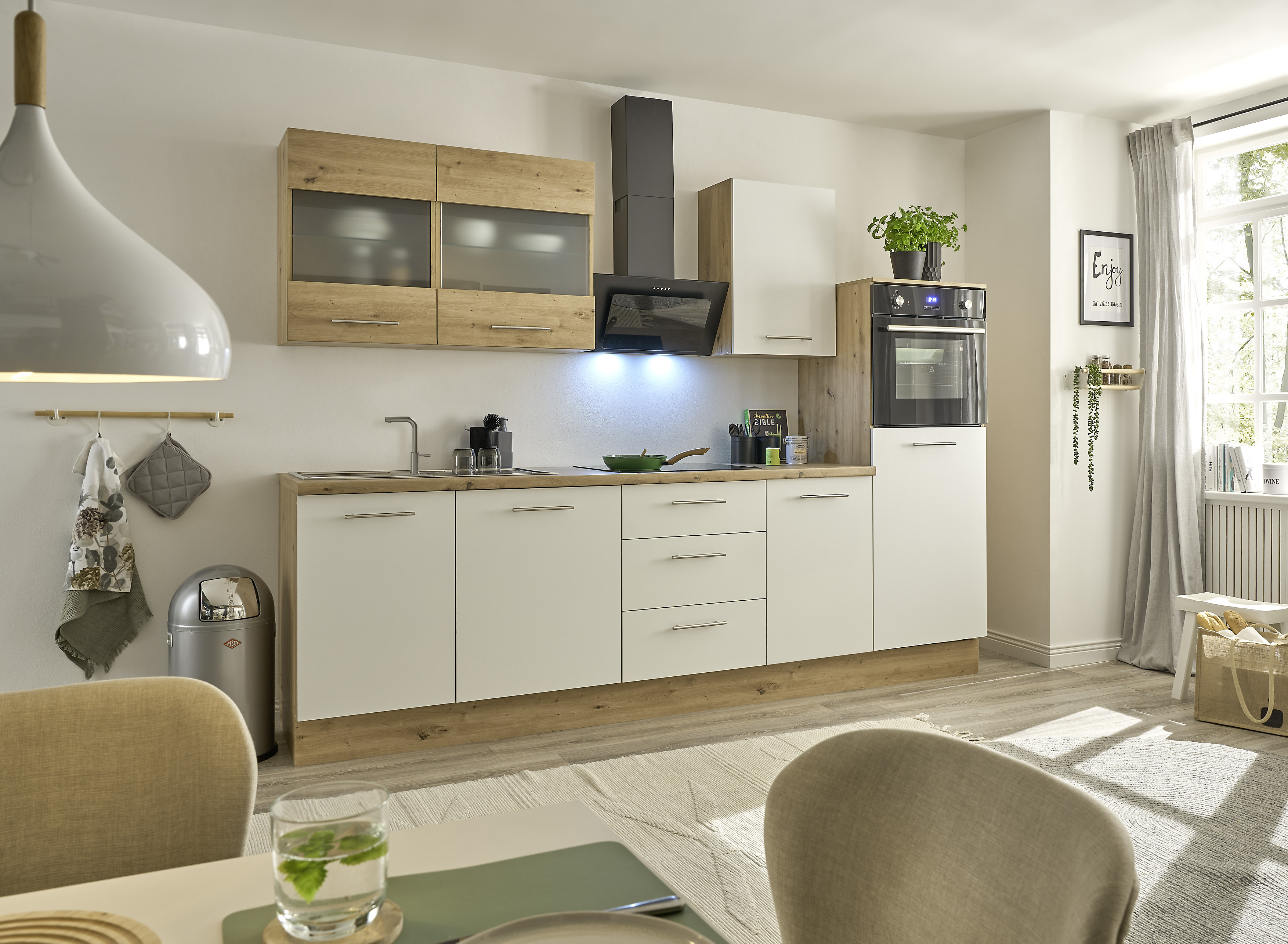 Korpus, linker und großer Hängeschrank, Arbeitsplatte und Sockel: Artisan Eiche Holznachbildung