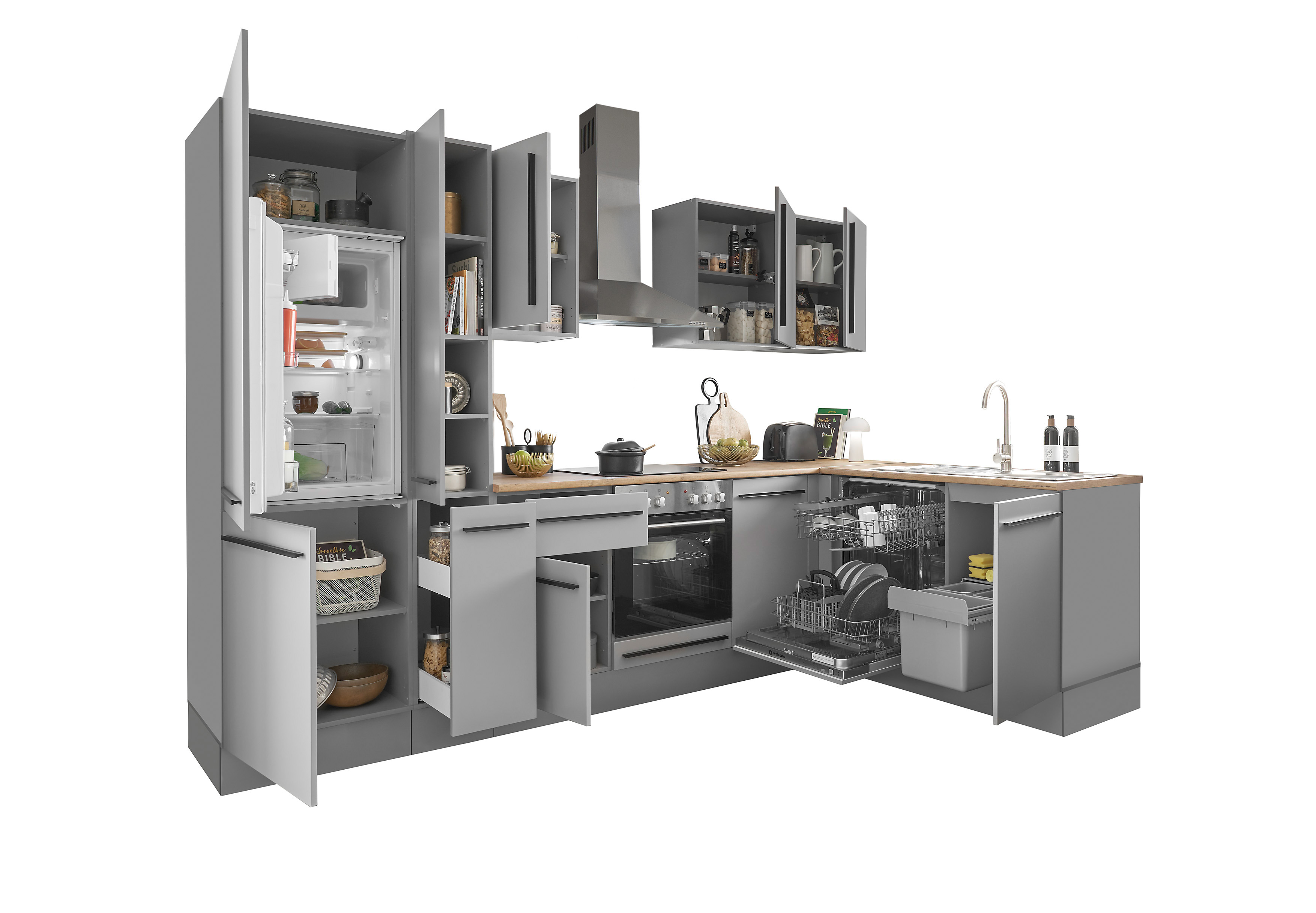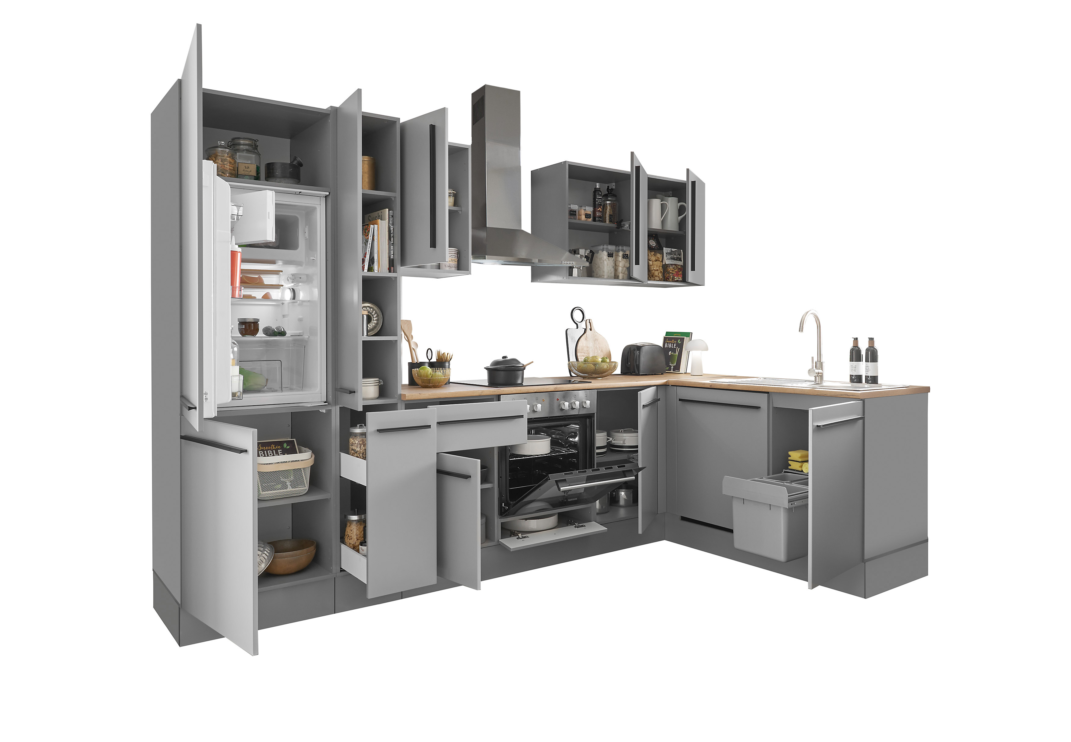 Küchenblock mit E-Geräten MANCHESTER (Ecke-Kühlschrank-Apotheker) I