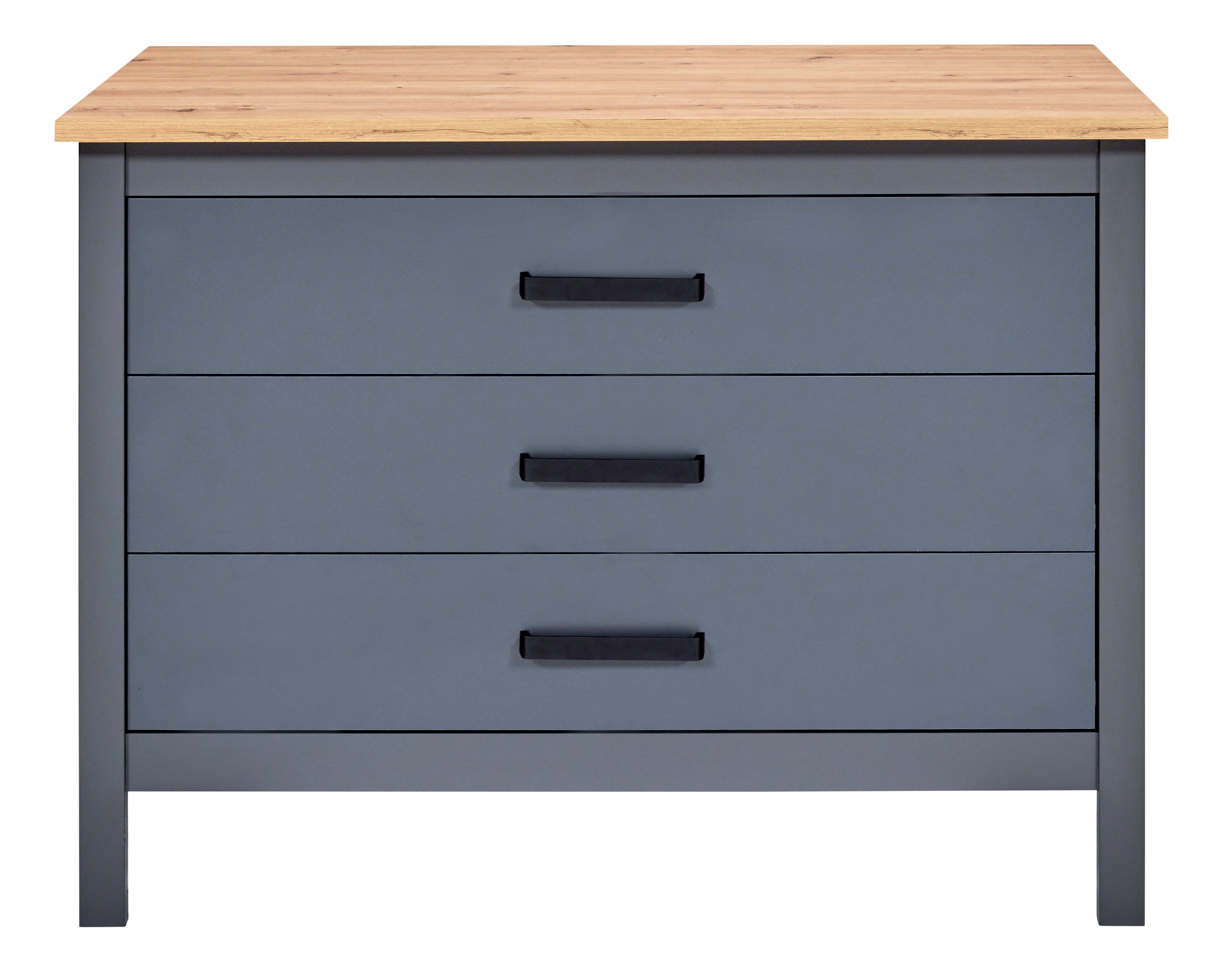 Die Höhe von 91,5 cm ist perfekt, um zwei hohe Hocker auf einer Seite zu platzieren und dort bequem zu essen. Auf der anderen Seite können Sie Ihre Küchenutensilien und Geschirr dank der drei geräumigen Schubladen stets griffbereit aufbewahren.