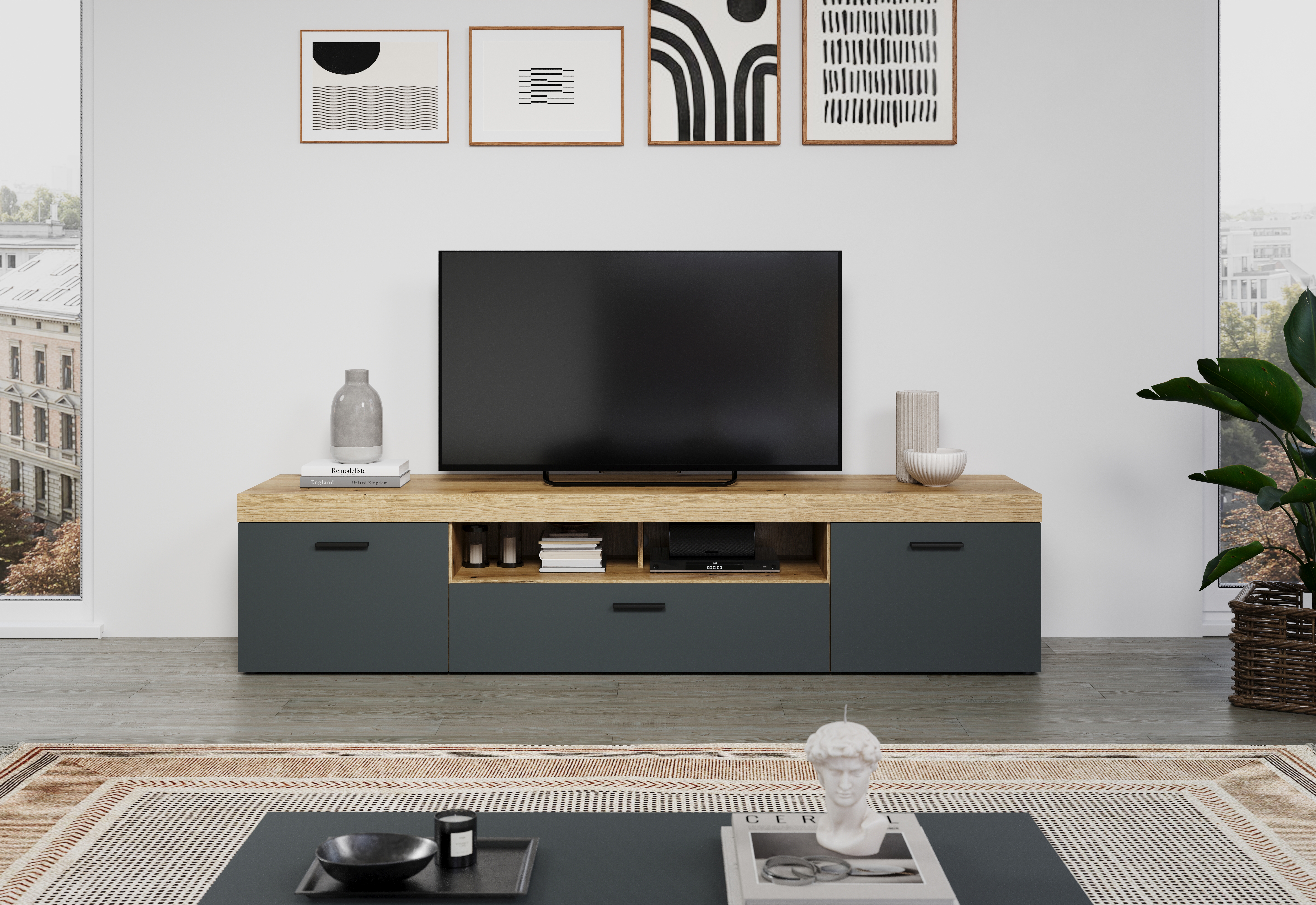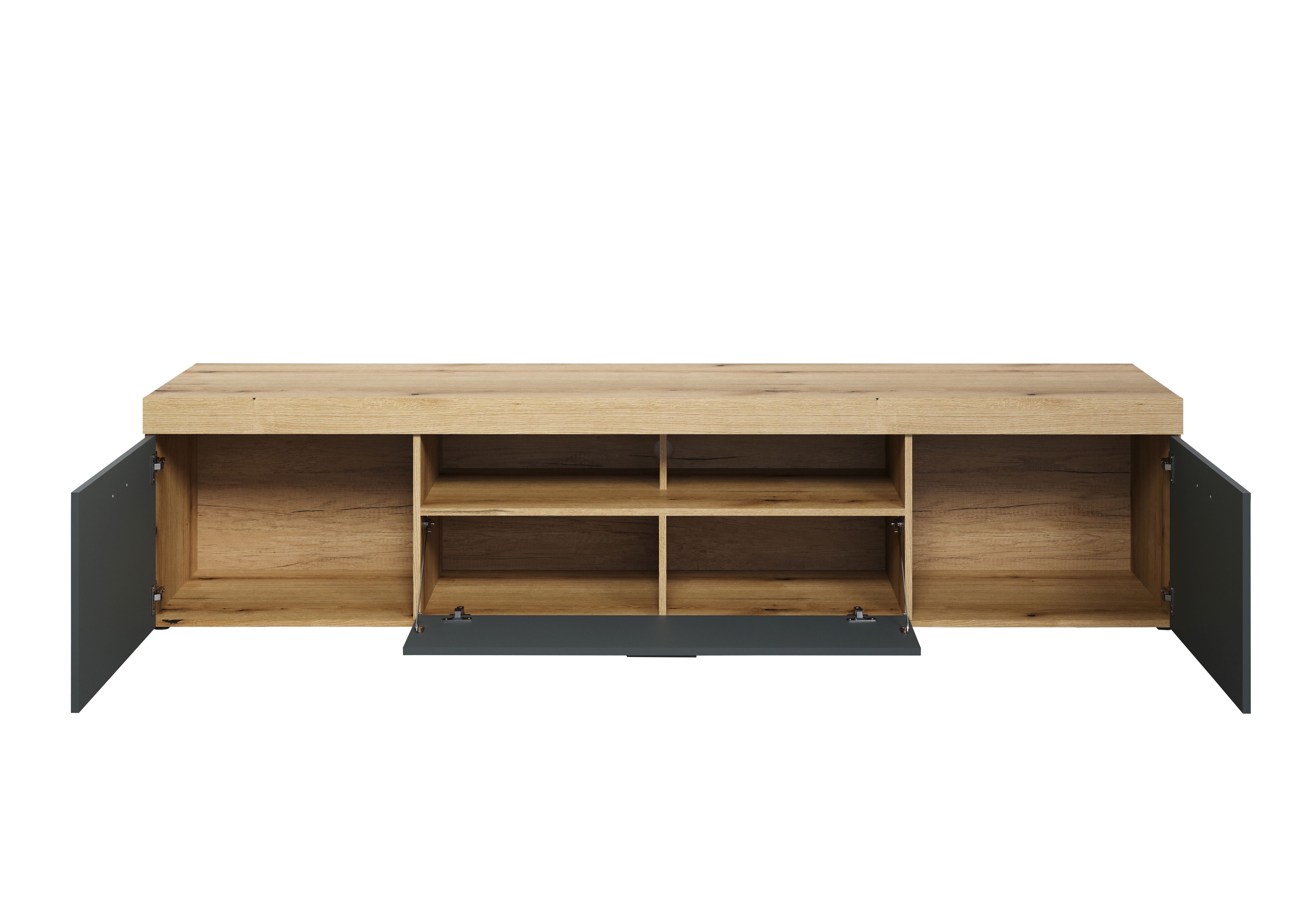 | Ausstattung Kommoden Phono Büro Regal: | Kabeldurchlass, Klappe(n), Offene Fächer, Türe(n) | ||