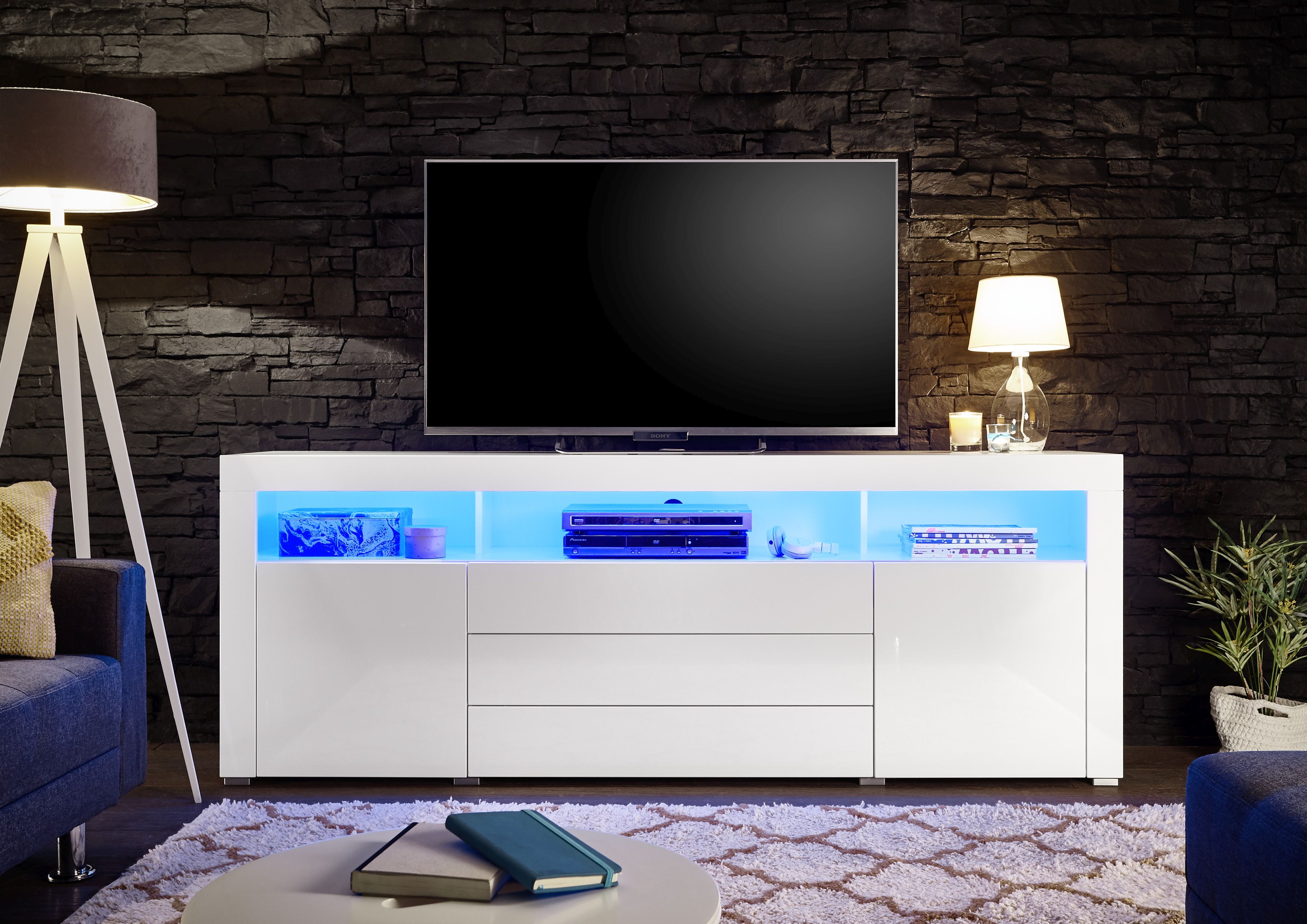 | Ausstattung Kommoden Phono Büro Regal: | Offene Fächer, Schublade(n), Türe(n), inkl. Beleuchtung | ||