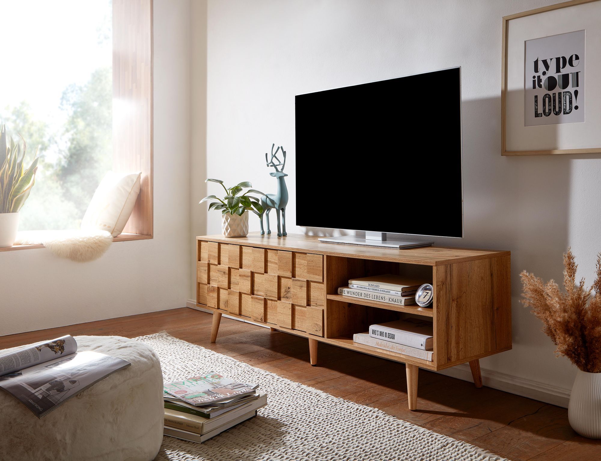 LIEFERUMFANG ✔ Geliefert wird ein Fernsehunterschrank ohne Dekoration. Lieferzustand: demontiert und sicher verpackt. Montagematerial und -anleitung liegen der Lieferung bei.