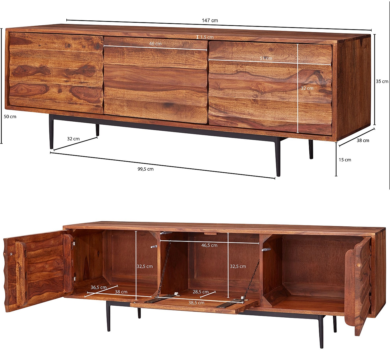 - BEGEISTERND ✔ Um Ihrem mühsam eingerichtetem Wohnzimmer den letzten Schliff zu verpassen, eignen sich Möbel aus Massivholz ganz besonders gut. Unser TV-Schrank zeichnet sich durch die besondere Maserung und die eindrucksvolle Härte des Sheeshamholzes aus und bringt so ein kleines Stück Natur in Ihr Wohnambiente. Wie bei jedem Massivholzmöbelstück sind auch Sheesham Möbel absolute Einzelstücke und so können Sie sich Ihr ganz persönliches Unikat nach Hause holen.