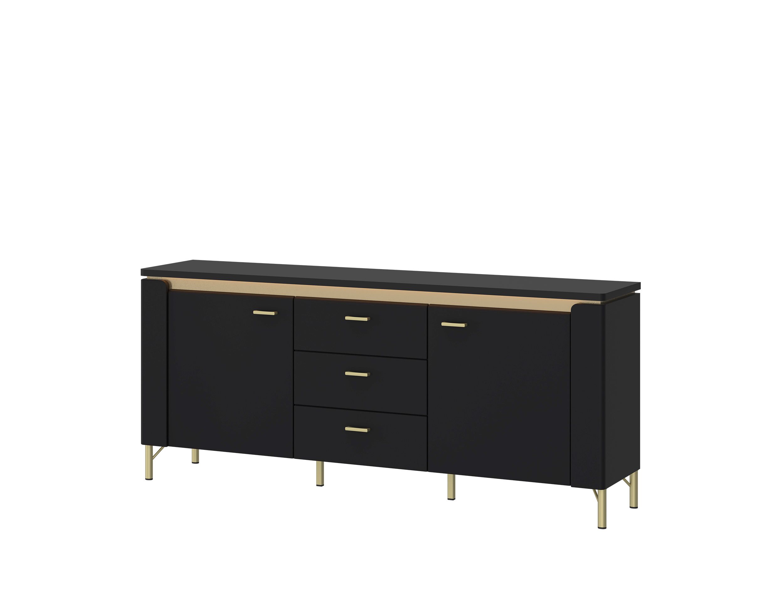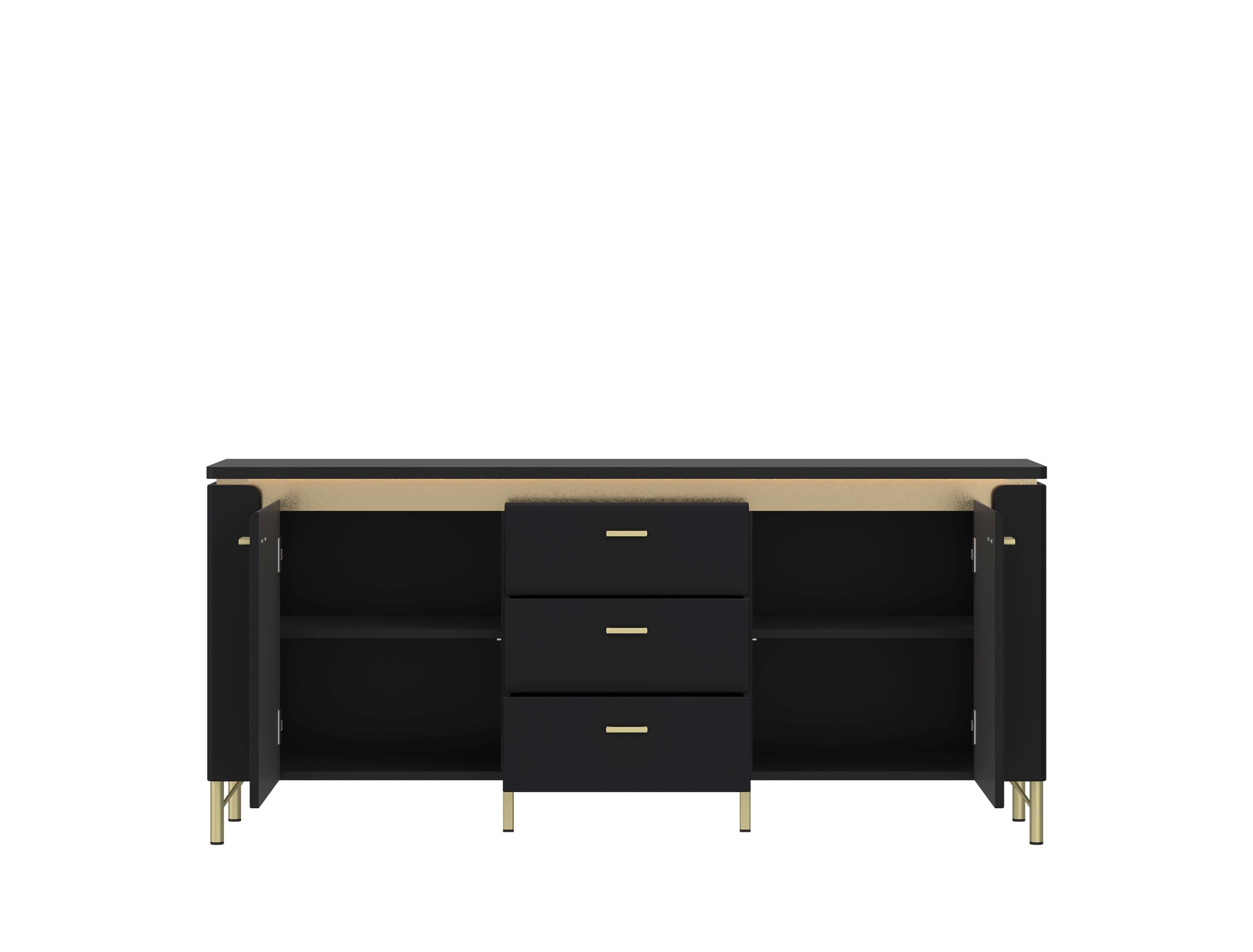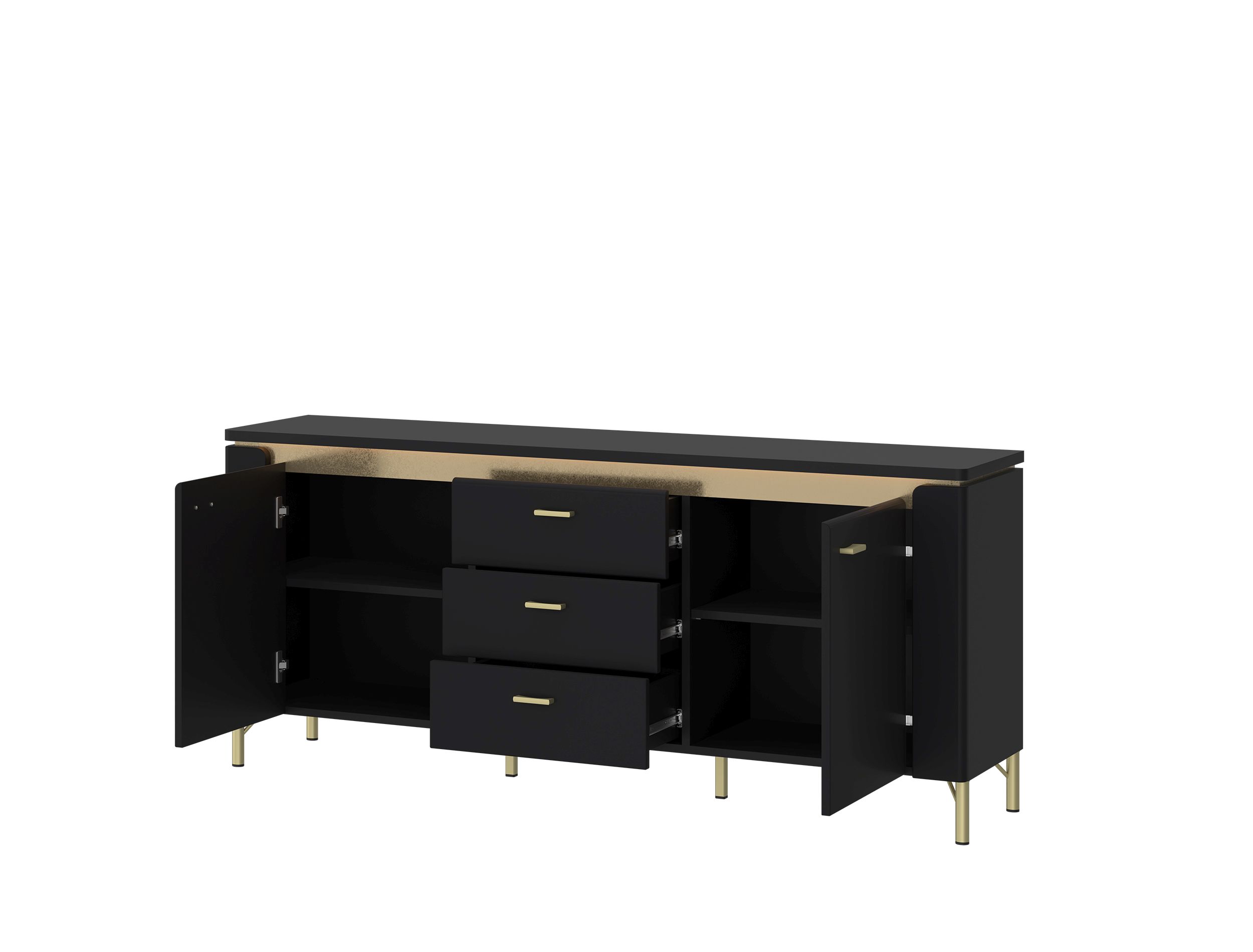 Korpus: Schwarz matt kombiniert mit Absetzungen in goldfarben, MDF Platte, Spanplatte mit Melaminharzbeschichtung