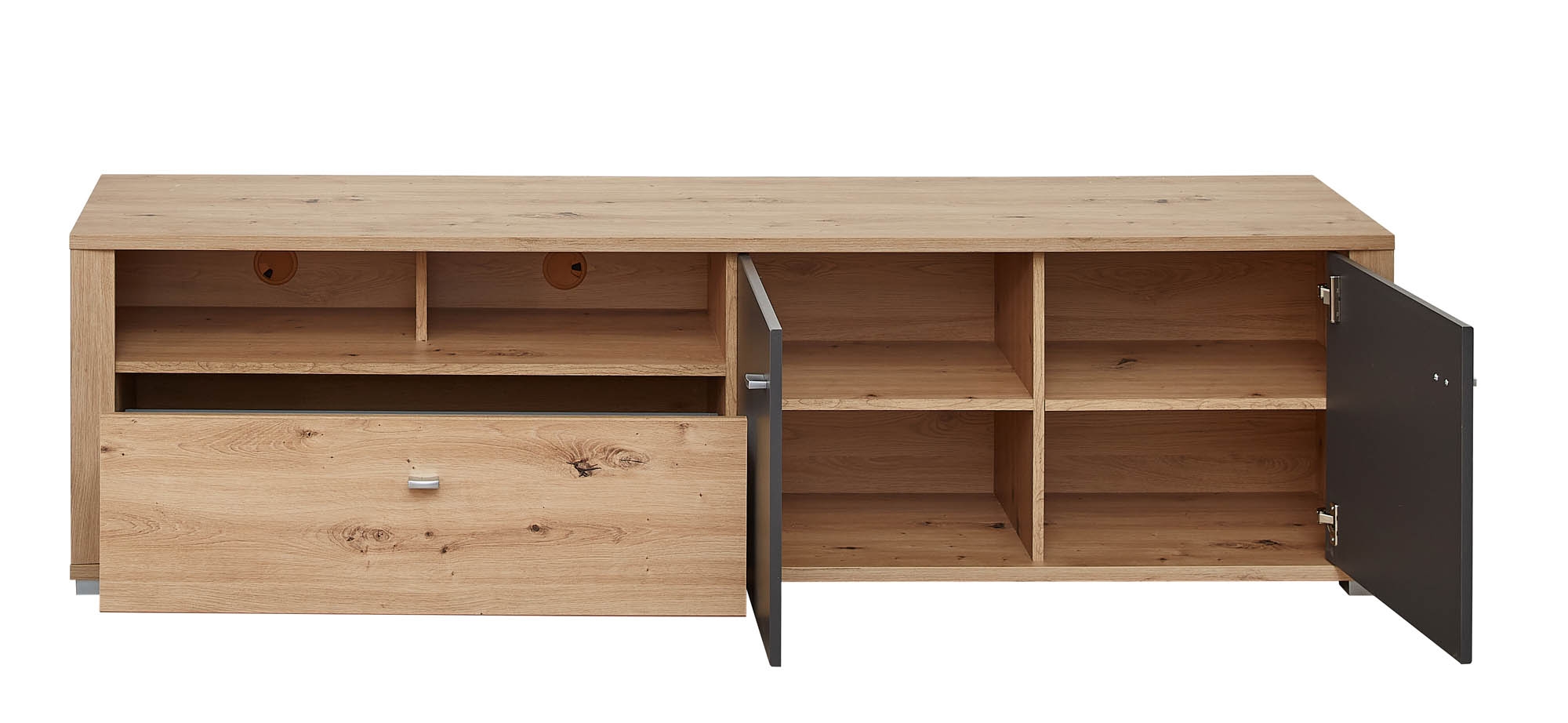 Front: Graphit Melamin mit Absetzungen in Artisan Eiche Holznachbildung