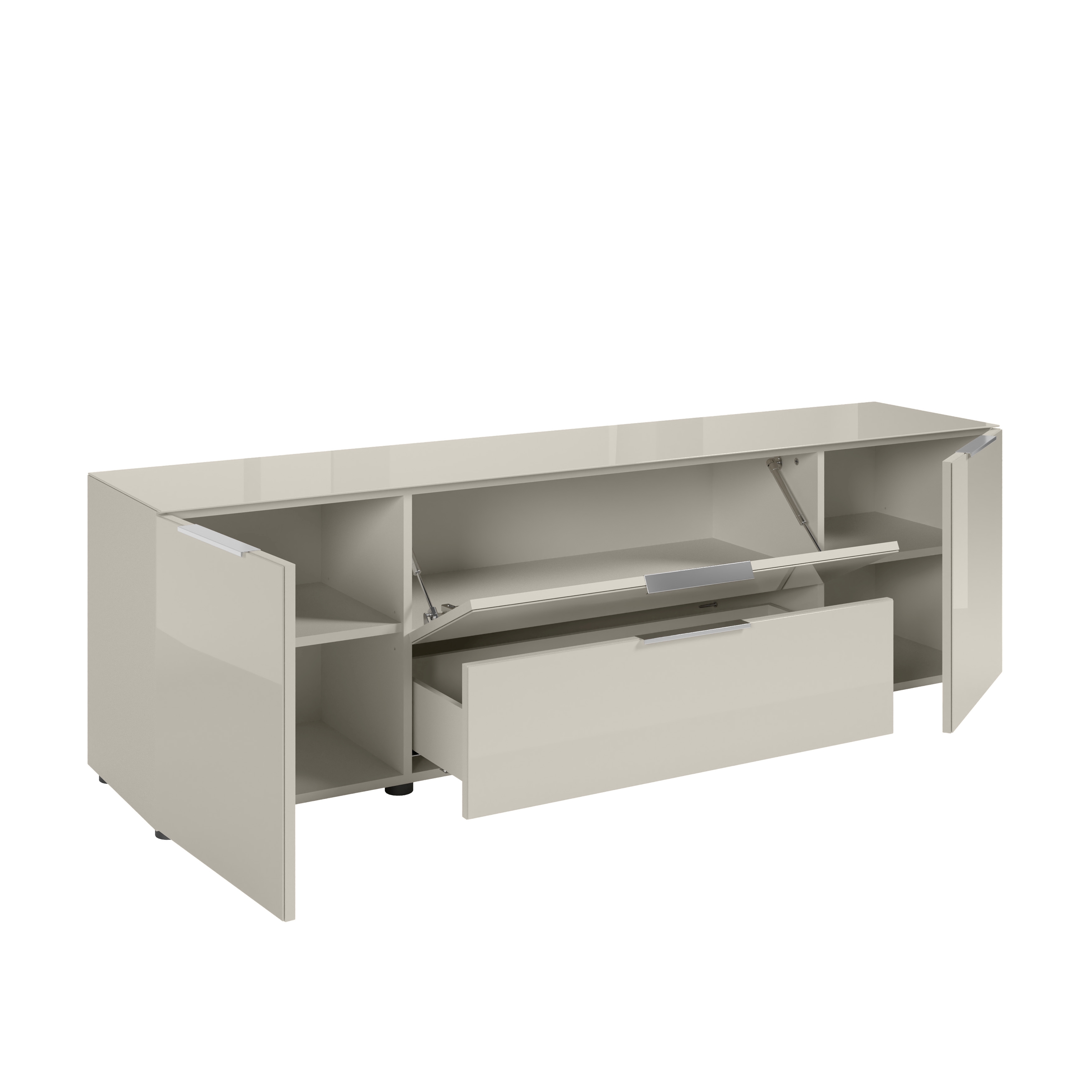 Korpus: Kaschmir, Spanplatte Melaminbeschichtung, Glasboden glatt