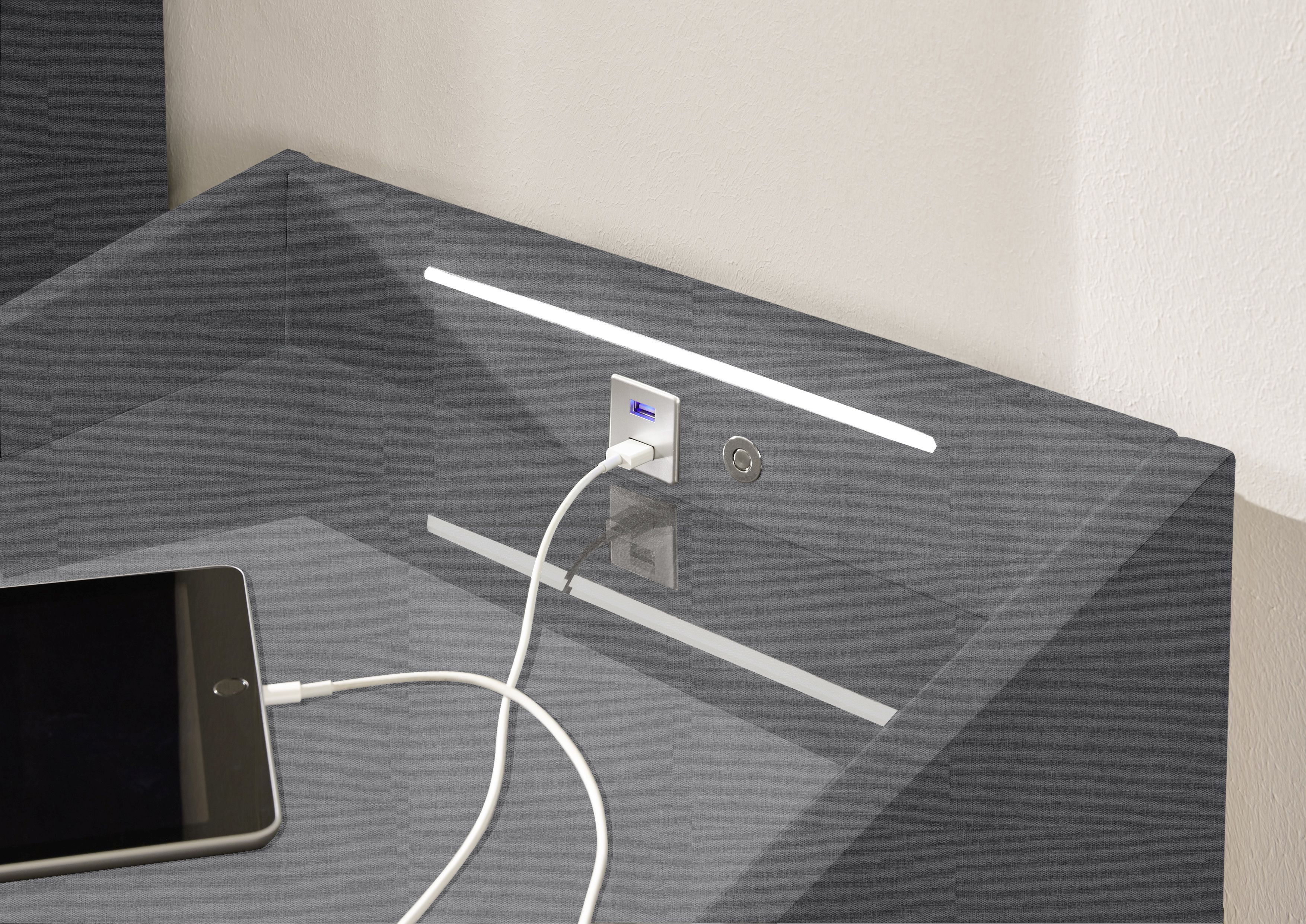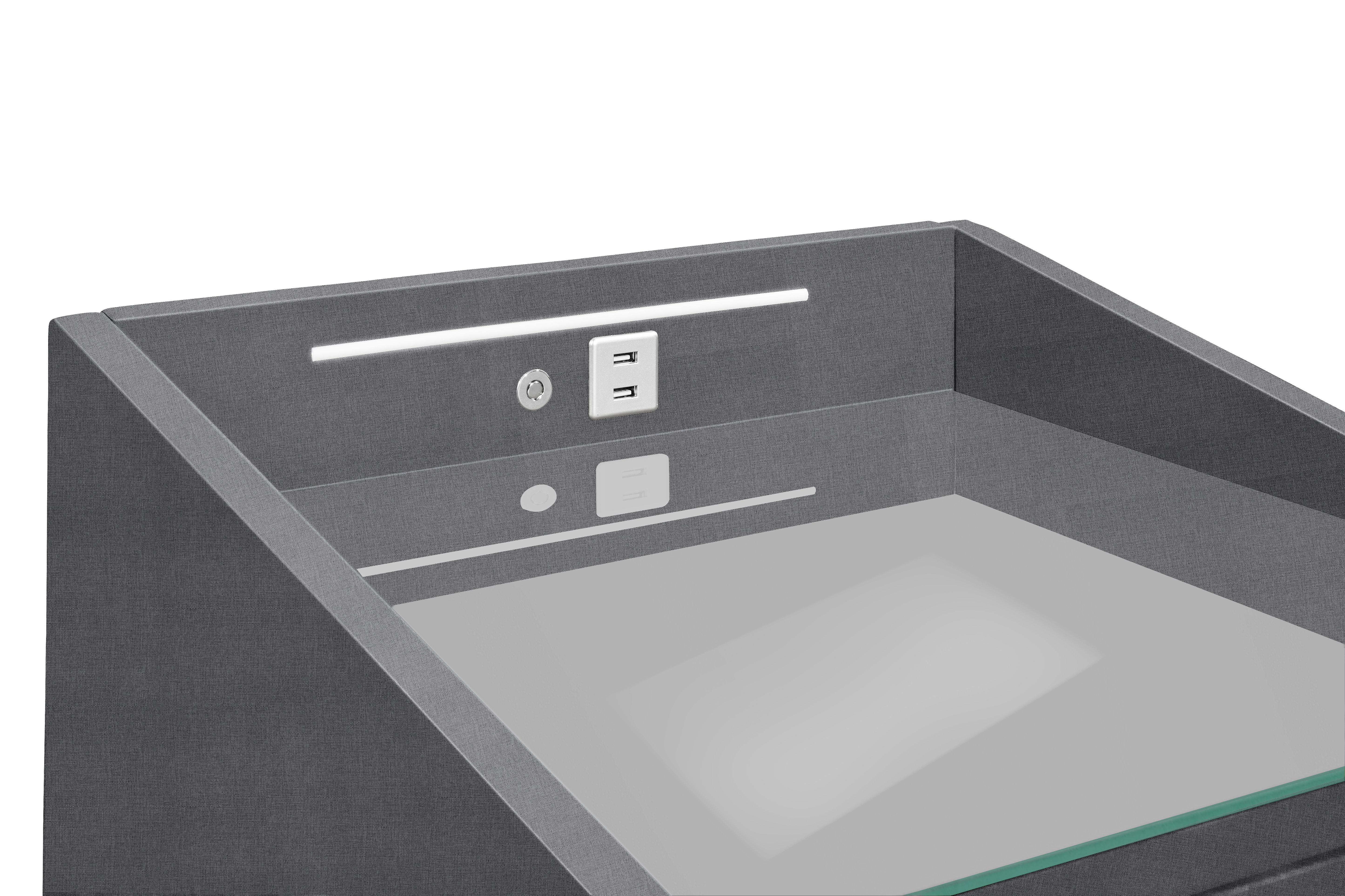 | Ausstattung Kommoden Phono Büro Regal: | Glasplatte, Schublade(n), inkl. Beleuchtung, inkl. USB-Anschluss | ||