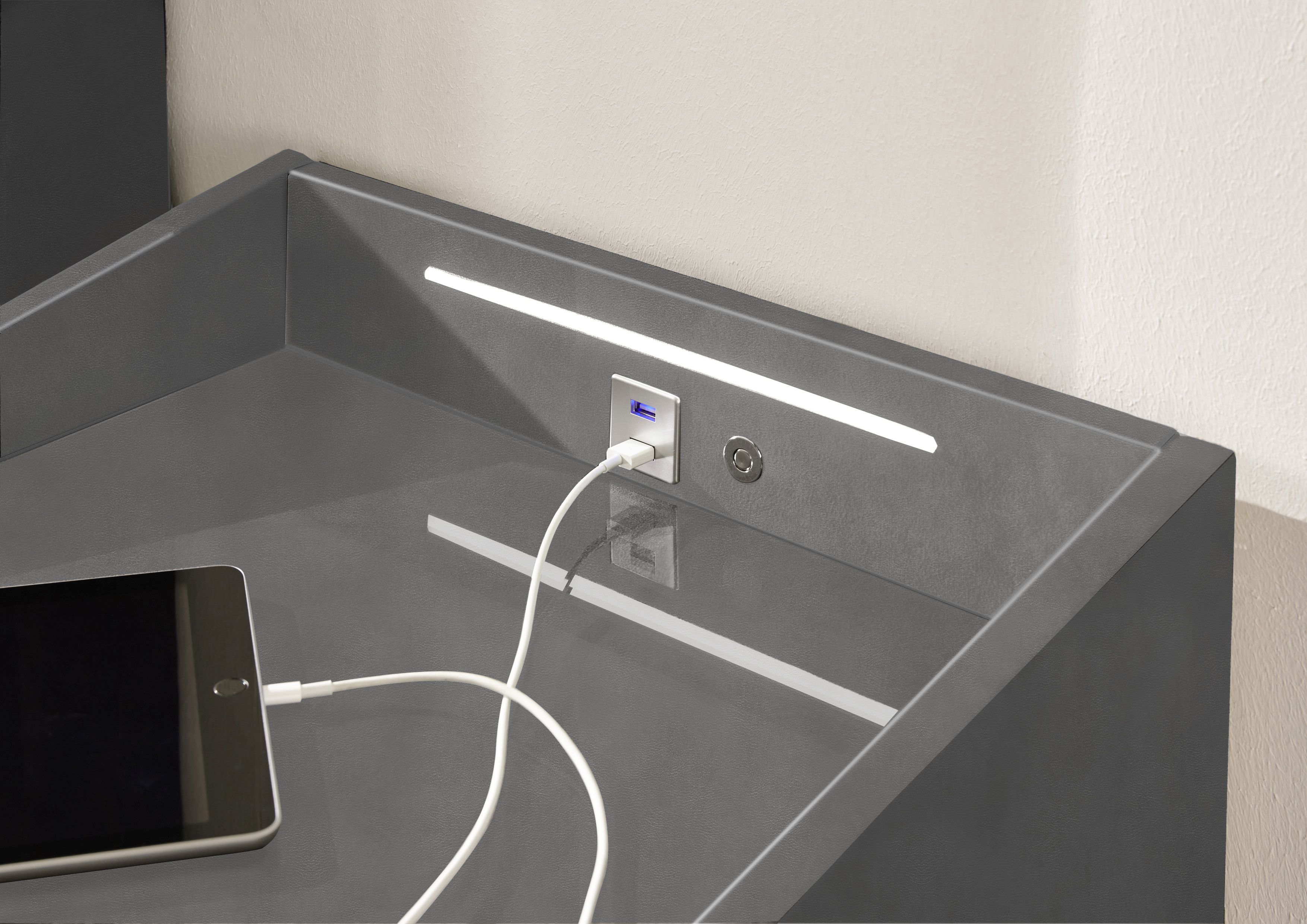 | Ausstattung Kommoden Phono Büro Regal: | Glasplatte, Schublade(n), inkl. Beleuchtung, inkl. USB-Anschluss | ||