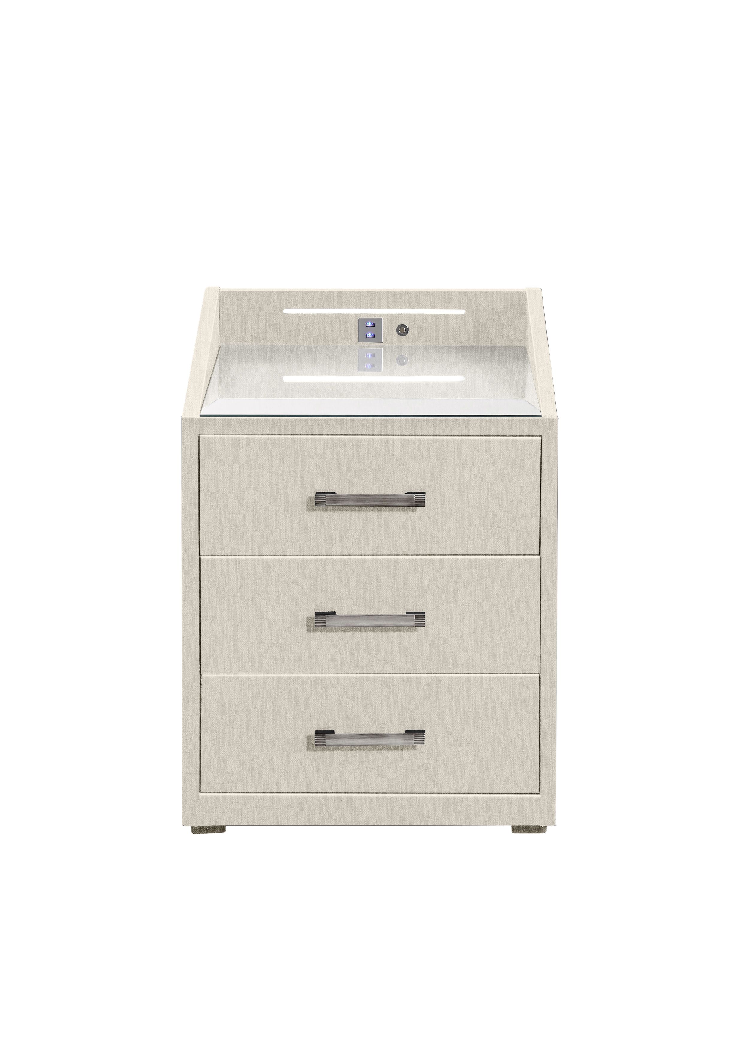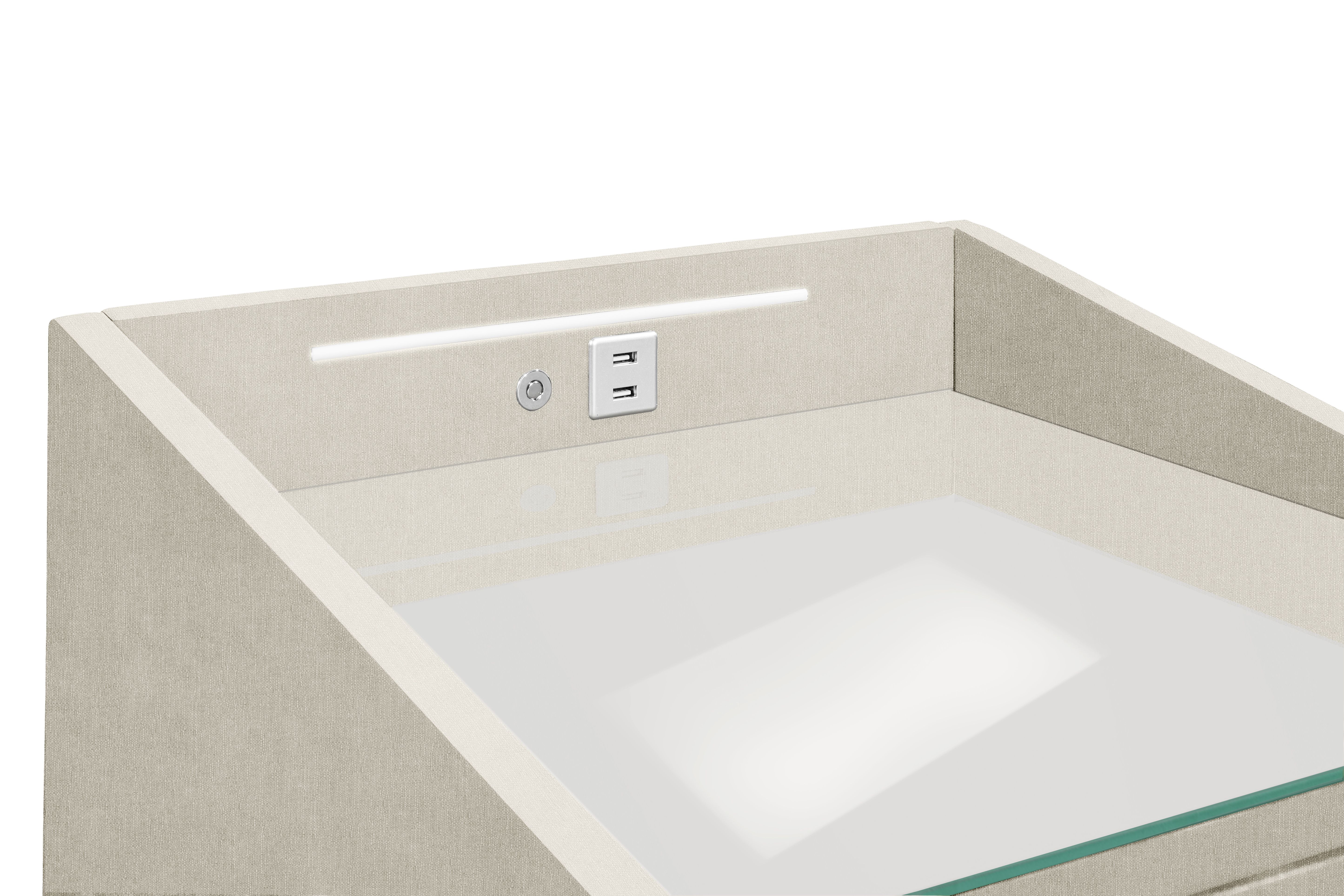 | Ausstattung Kommoden Phono Büro Regal: | Glasplatte, Schublade(n), inkl. Beleuchtung, inkl. USB-Anschluss | ||