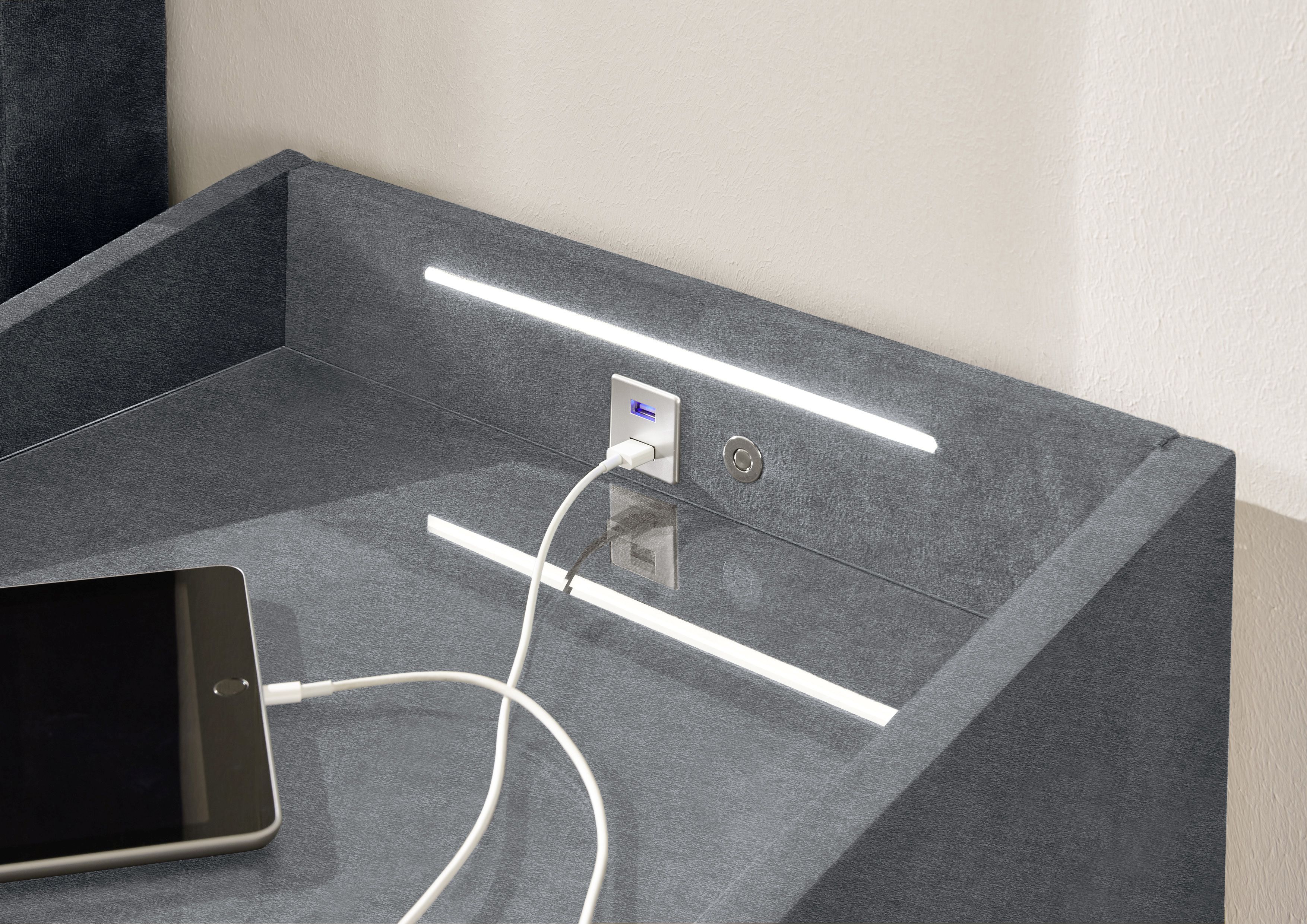 | Ausstattung Kommoden Phono Büro Regal: | Glasplatte, Schublade(n), inkl. Beleuchtung, inkl. USB-Anschluss | ||