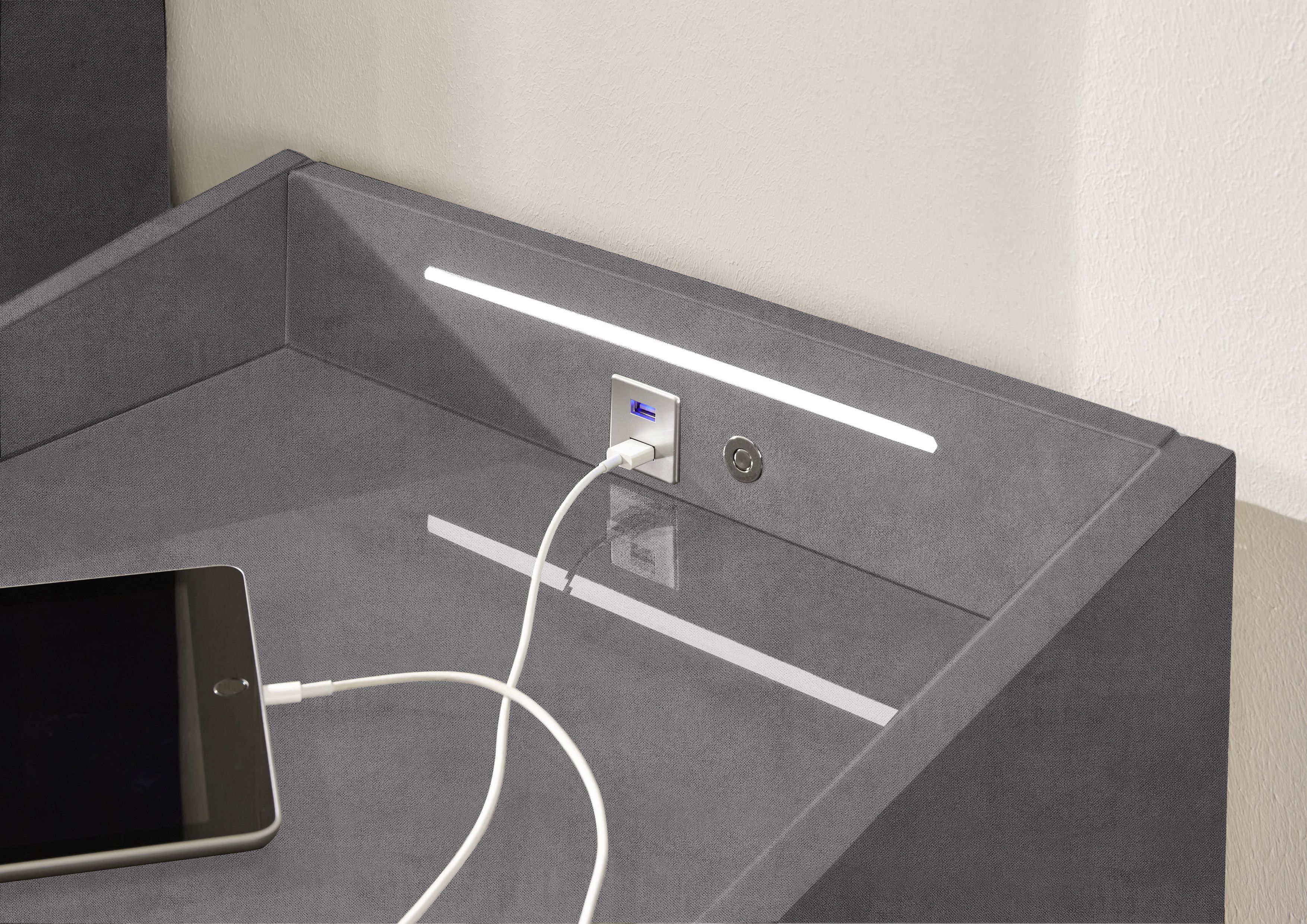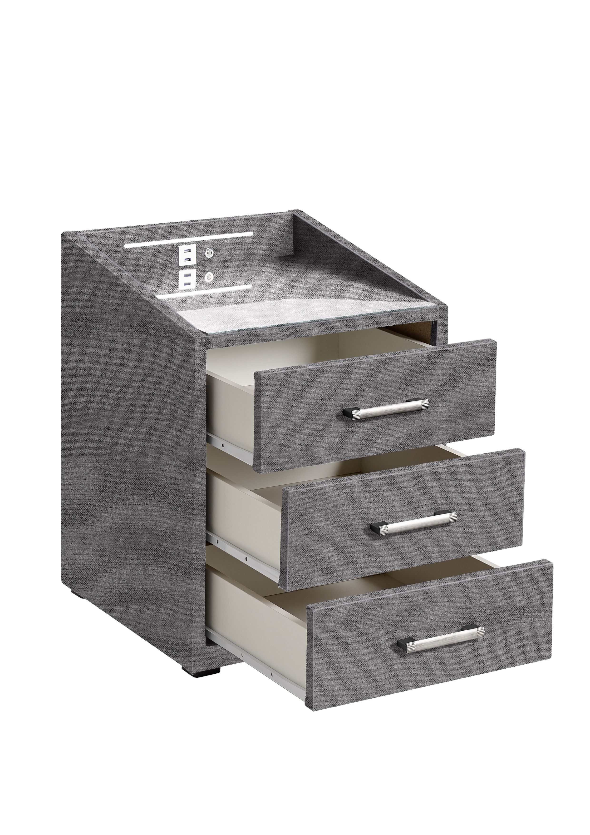 | Ausstattung Kommoden Phono Büro Regal: | Glasplatte, Schublade(n), inkl. Beleuchtung, inkl. USB-Anschluss | ||