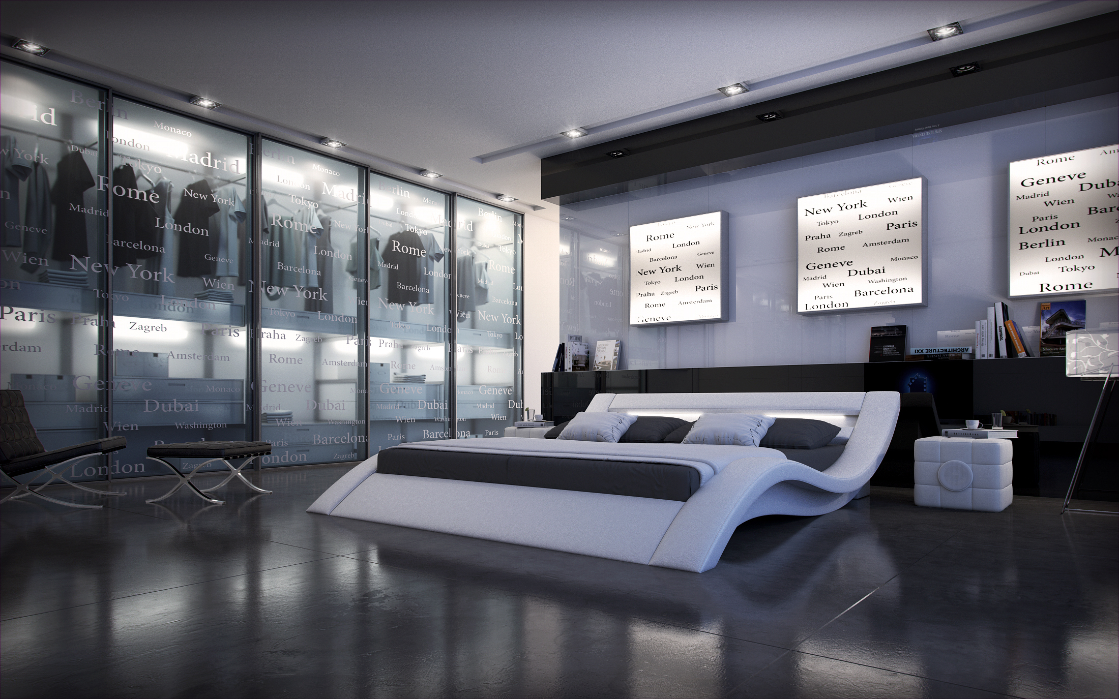 - zwei integrierte LED-Lichtleisten (je 30 cm) im Kopfteil