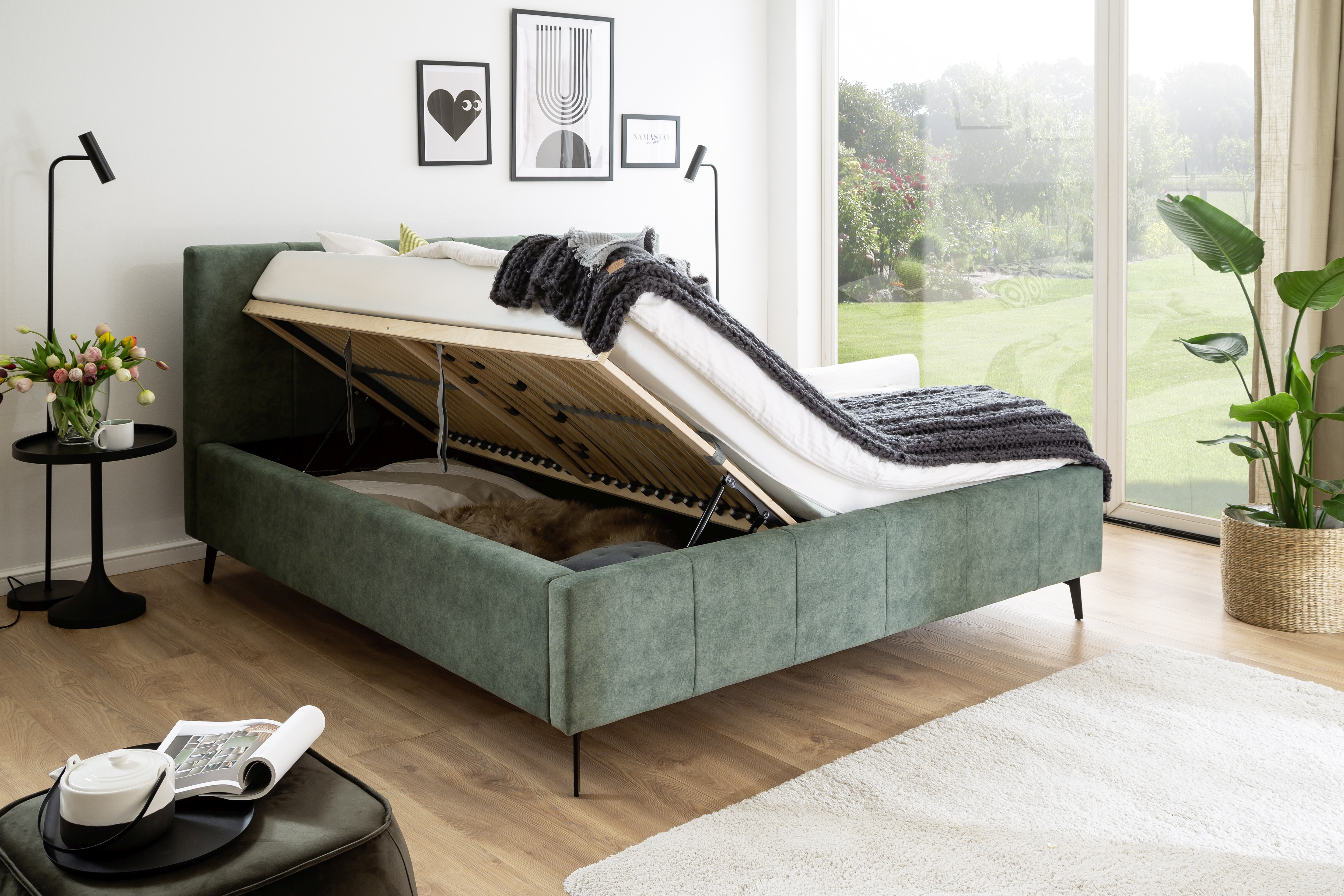 inklusive 2 belüftete Bettkästen und seitlich zu öffnende Federholzrahmen