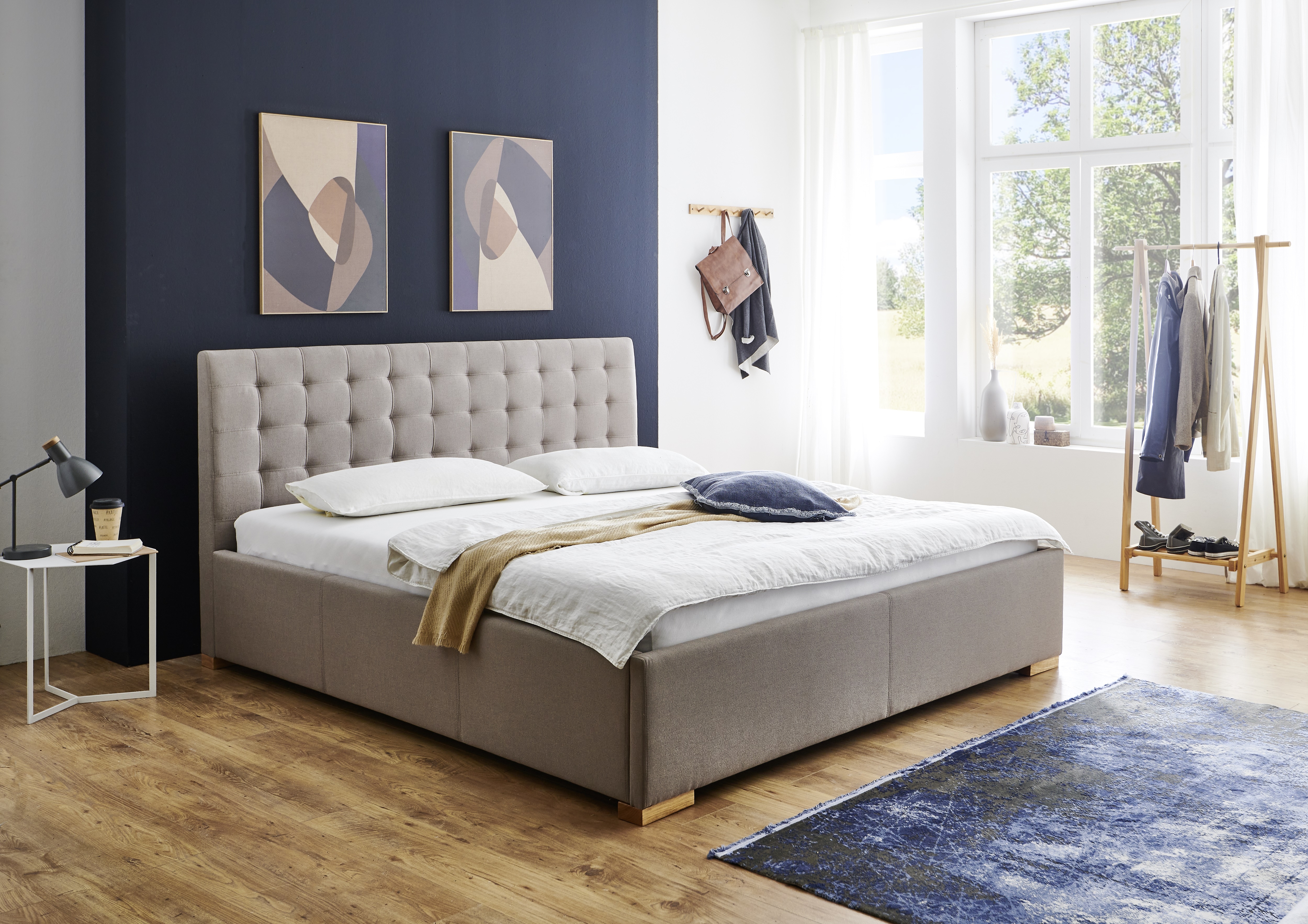 1 Bettgestell mit gestepptem Kopfteil