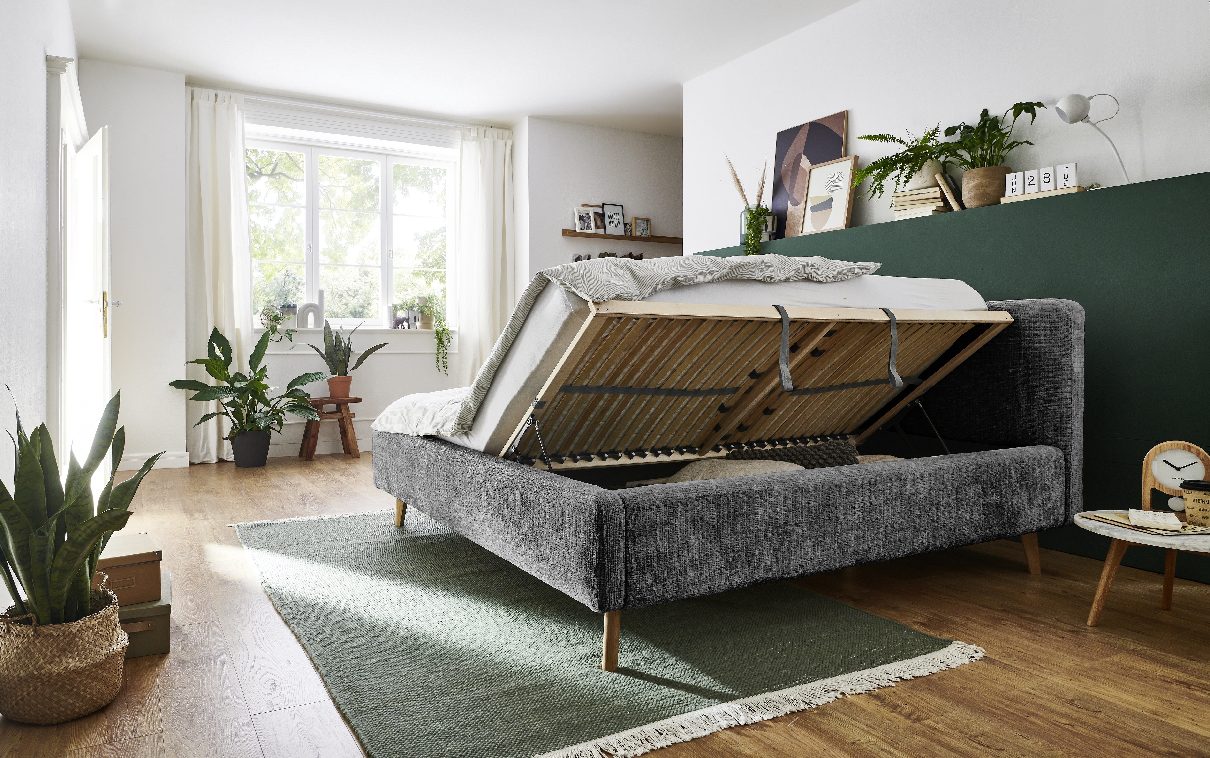 inklusive 2 belüfteten Bettkästen und seitlich zu öffnenden Federholzrahmen