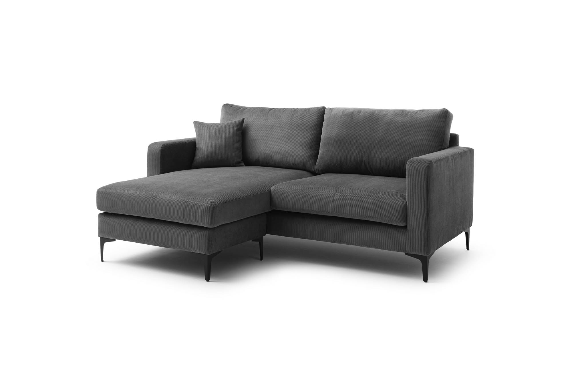 1 Sitzelement und unmontierbarer Hocker: Durch die losen Sitzkissen und das unmontierbare Hockerelement kann die Richtung des Sofas ganz einfach geändert werden.