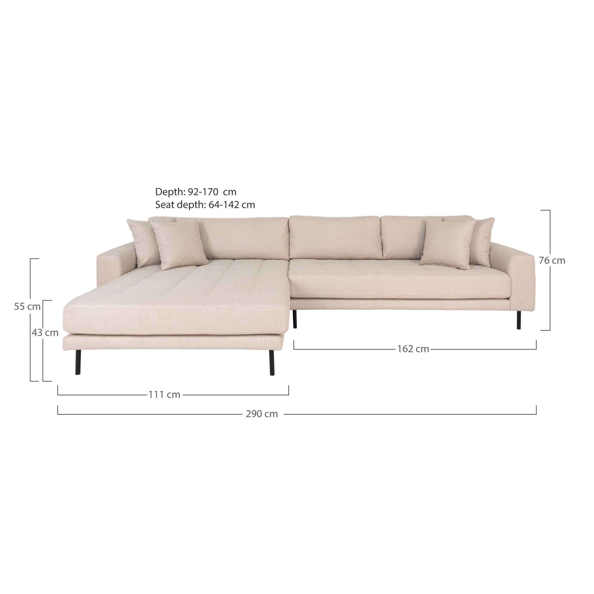 | Polsterecke | 290 | 76 | 170 |