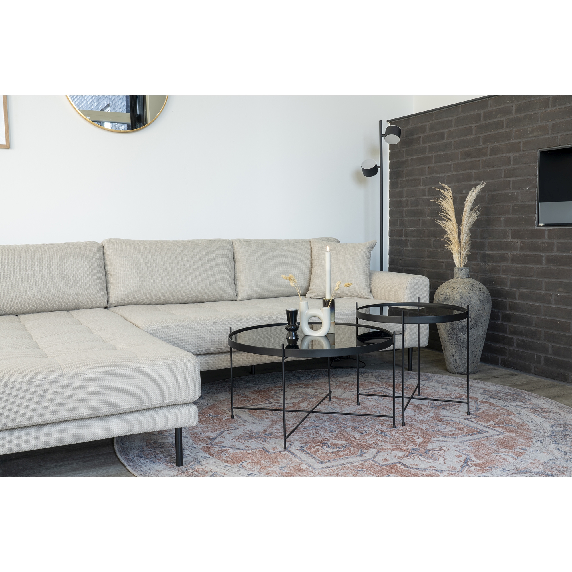 | Ausstattung Polster: | Ottomane links, Rücken echt, inkl. Kissen | ||