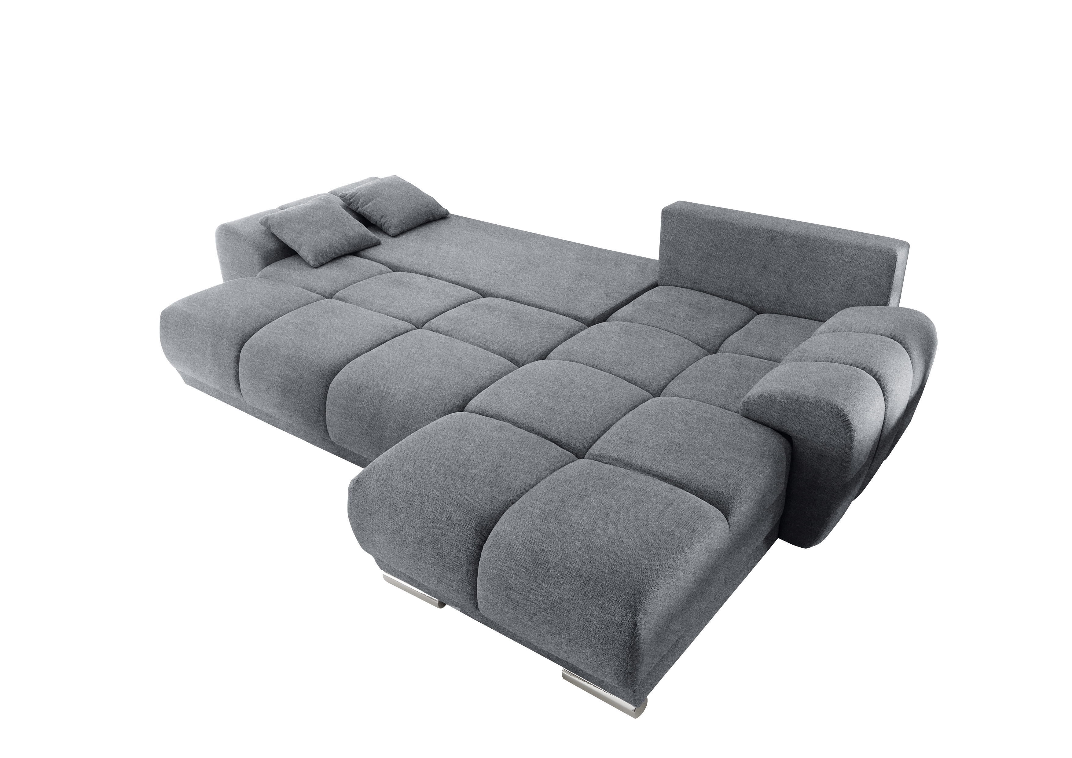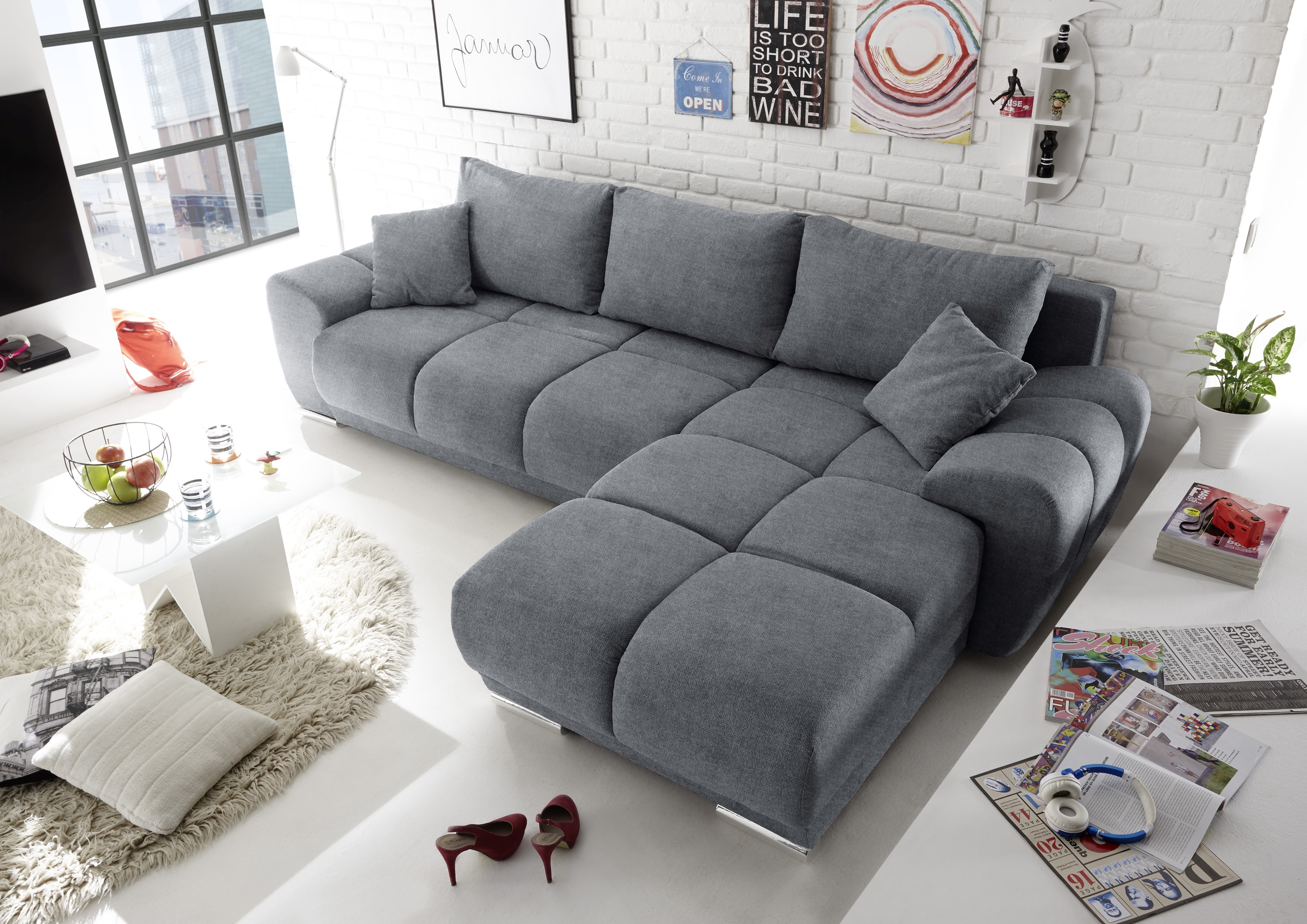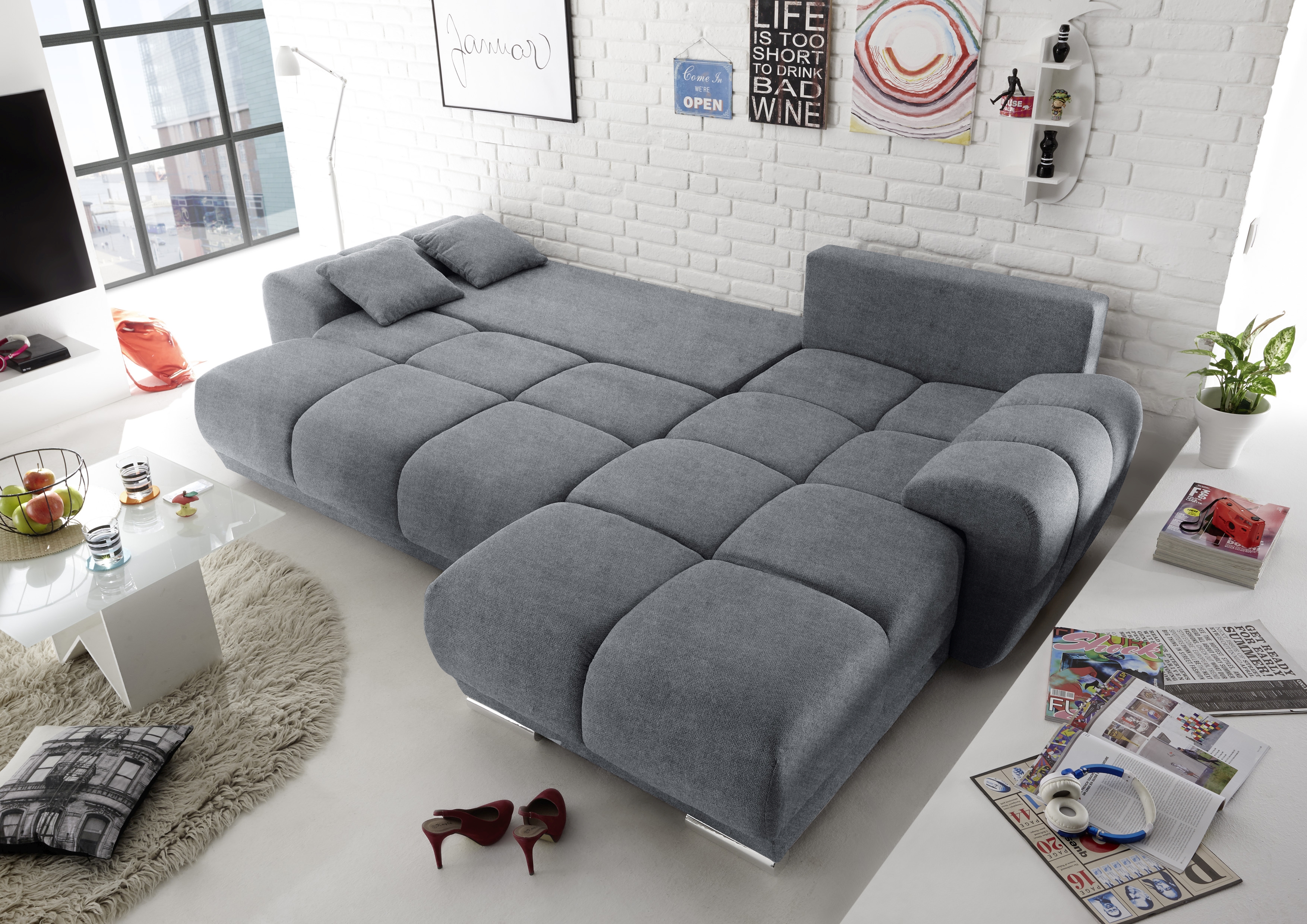 | Ausstattung Polster: | Ottomane rechts links wählbar, Rücken echt, inkl. Bettkasten, inkl. Kissen | ||