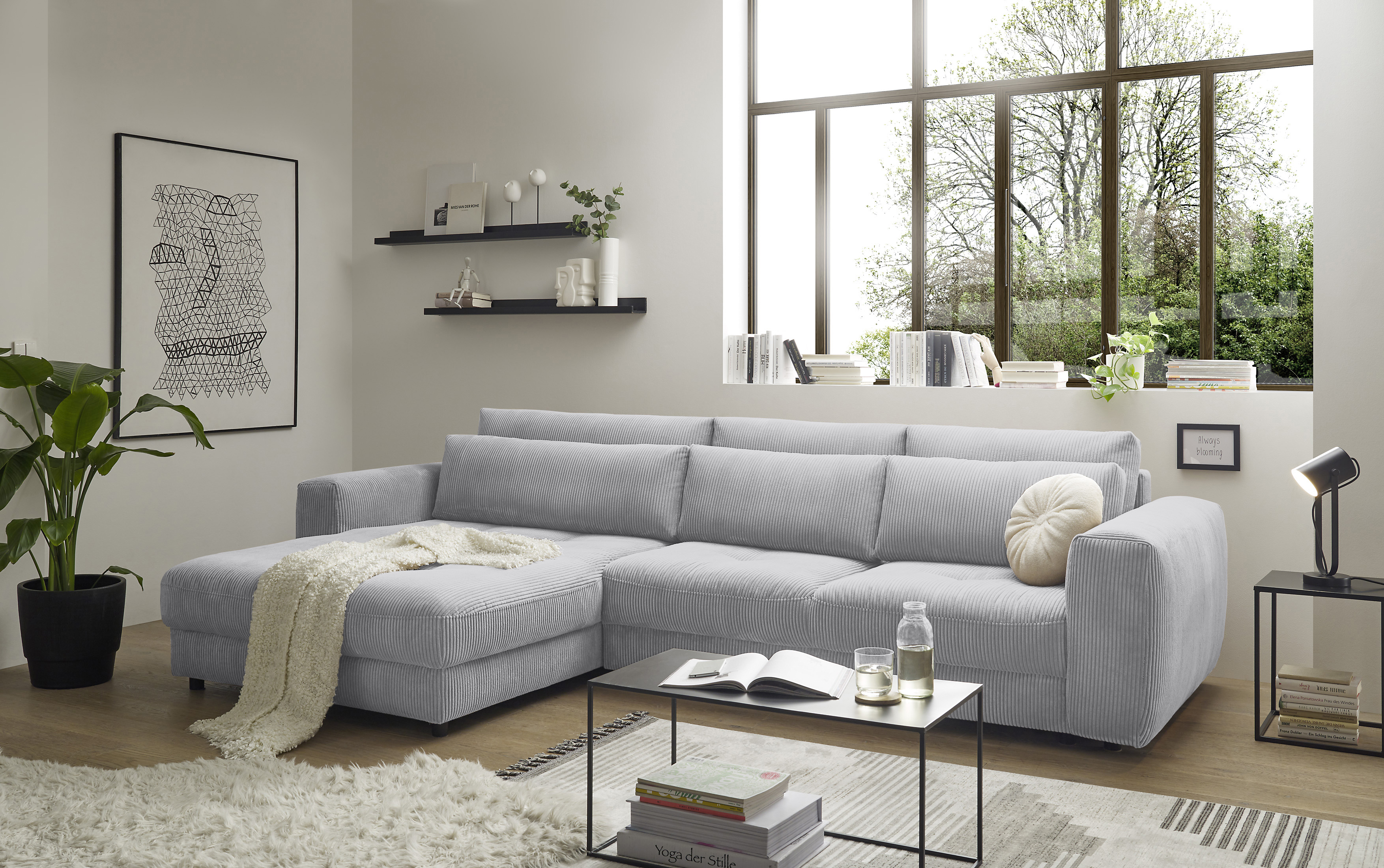 | Ausstattung Polster: | Rücken echt, inkl. Kissen | ||