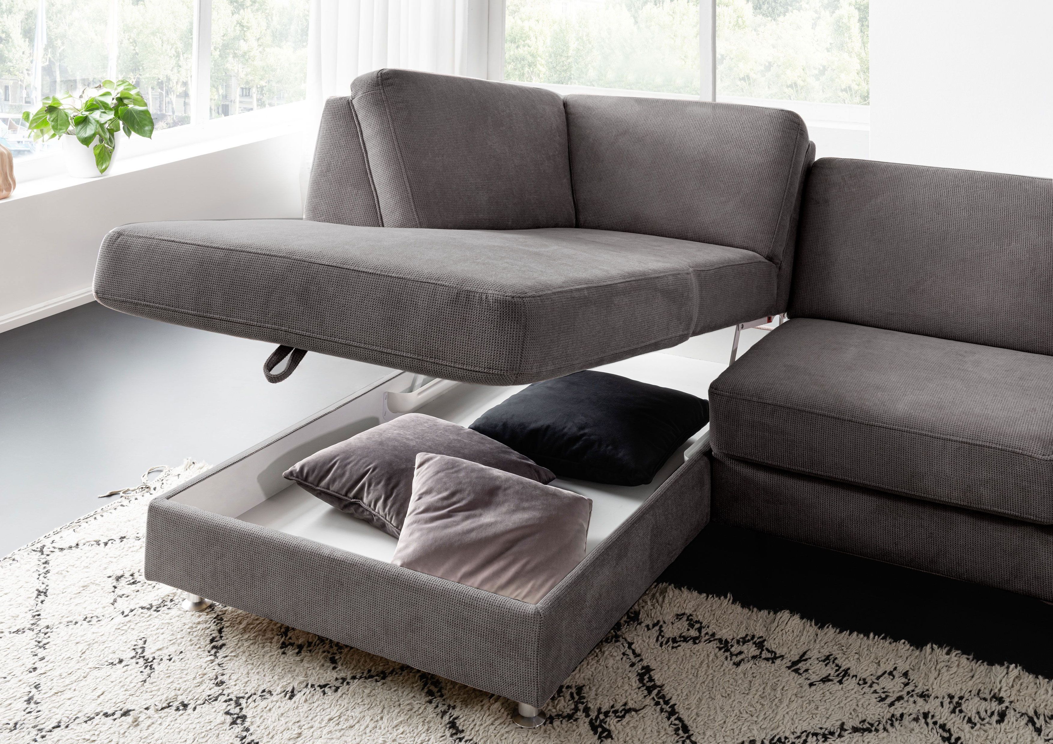 | Ausstattung Polster: | Kopfstützen, Ottomane links, Rücken echt, inkl. Bettkasten | ||