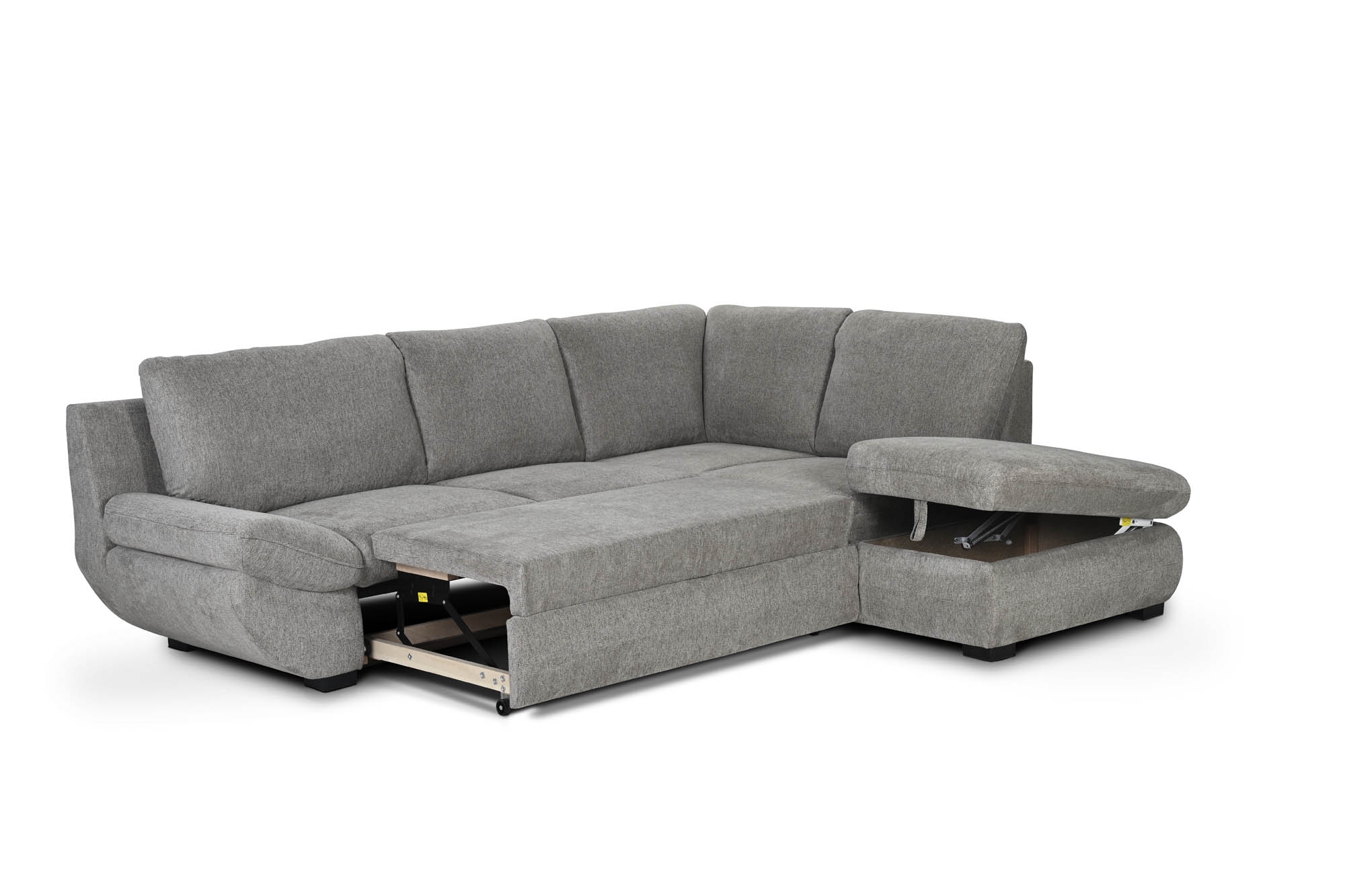 | Ausstattung Polster: | Ottomane rechts, Rücken echt, inkl. Bettkasten | ||