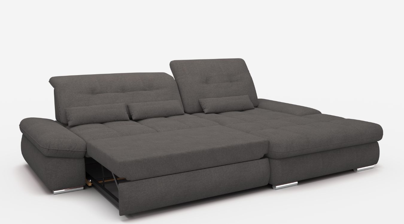 | Ausstattung Polster: | Kopfstützen, Ottomane rechts, Sitzvorzug manuell, inkl. Bettkasten, inkl. Kissen | ||