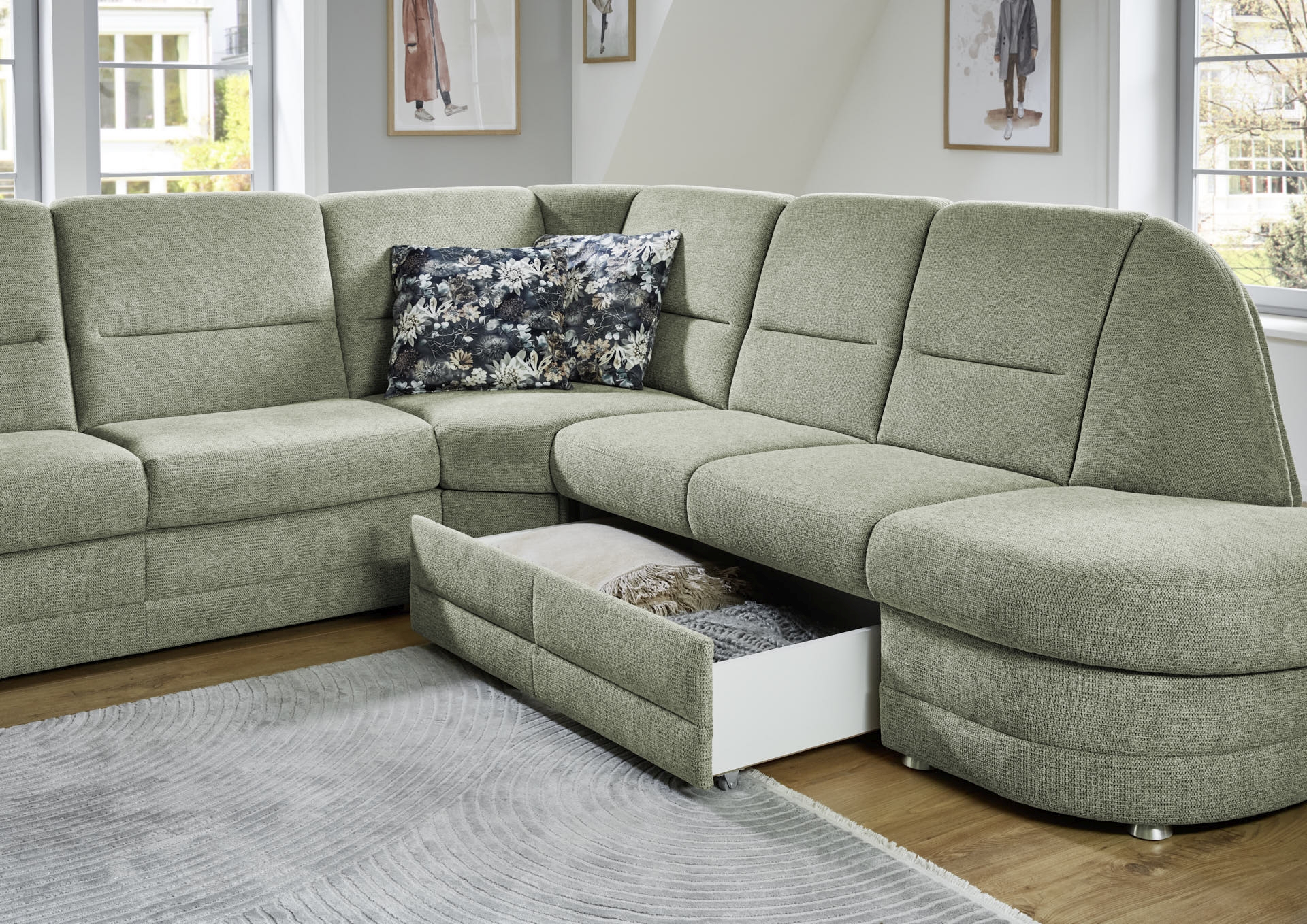 | Ausstattung Polster: | Rücken echt, inkl. Bettkasten | ||