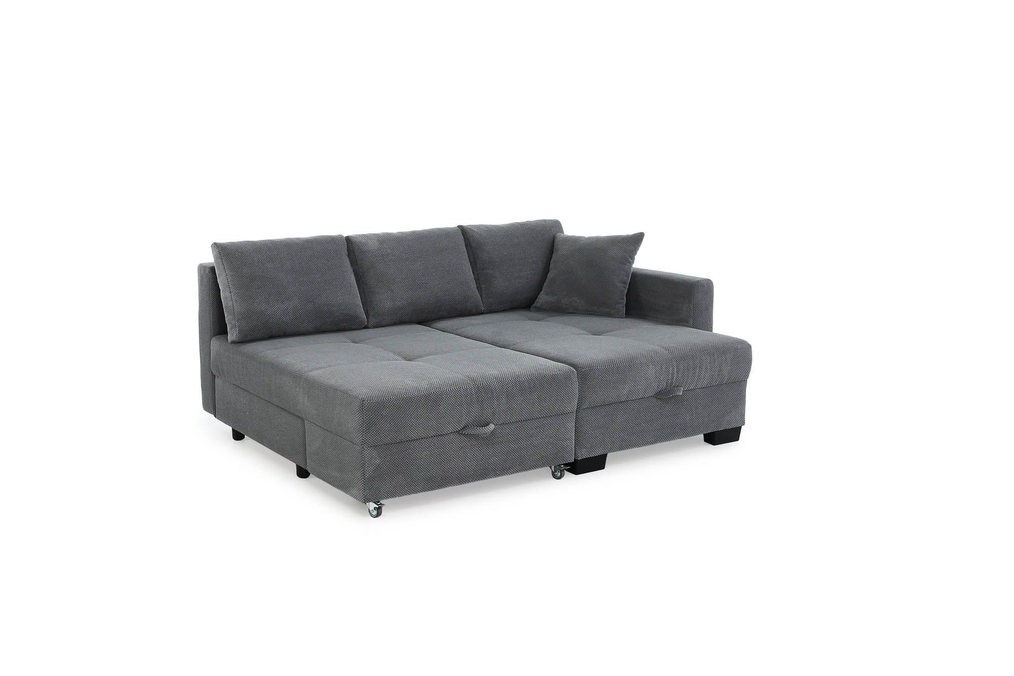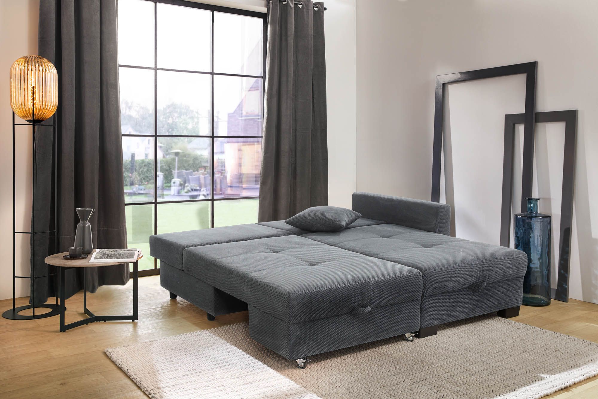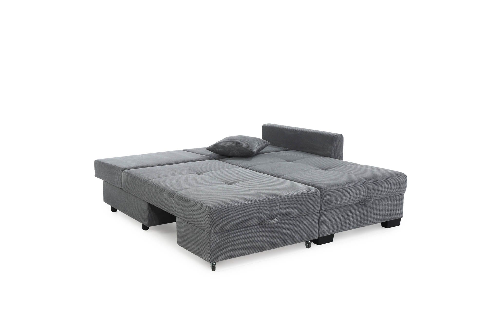 | Ausstattung Polster: | Ottomane rechts links wählbar, Rücken echt, inkl. Bettkasten, inkl. Kissen | ||