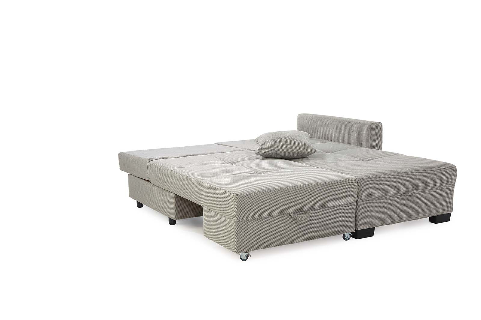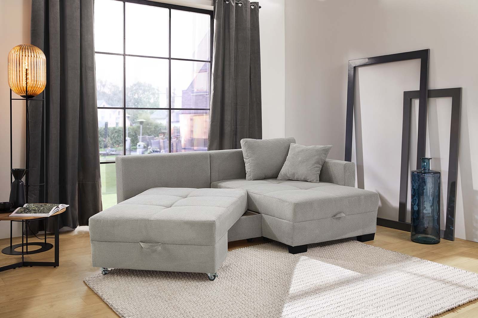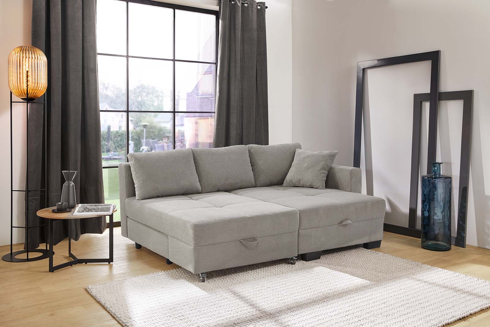 | Ausstattung Polster: | Ottomane rechts links wählbar, Rücken echt, inkl. Bettkasten, inkl. Kissen | ||
